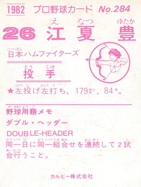 カルビー1982 江夏豊(日本ハム) レギュラーカード #284