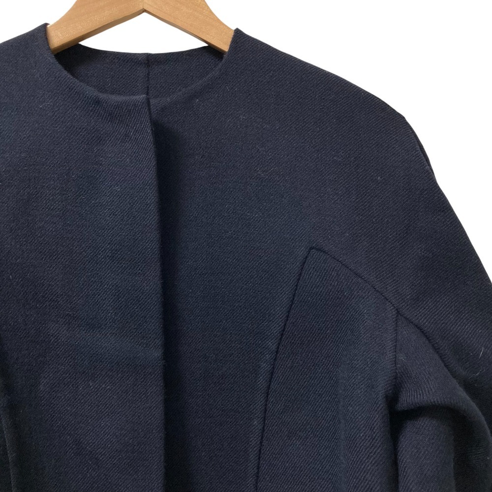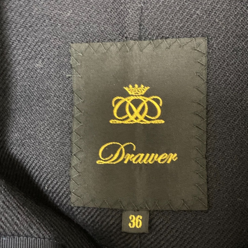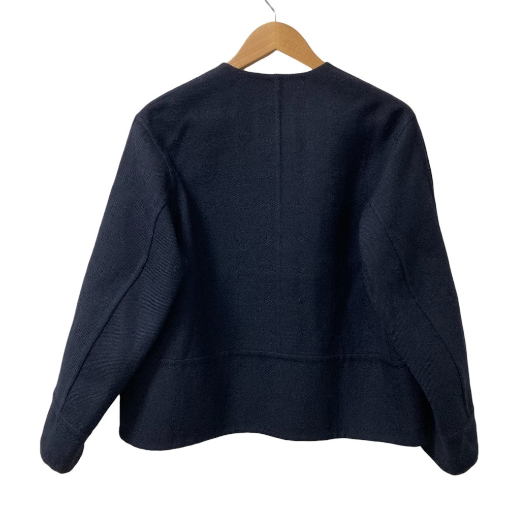 美品 Drawer ドゥロワー ノーカラージャケット 6522-234-0682 サイズ36 ネイビー