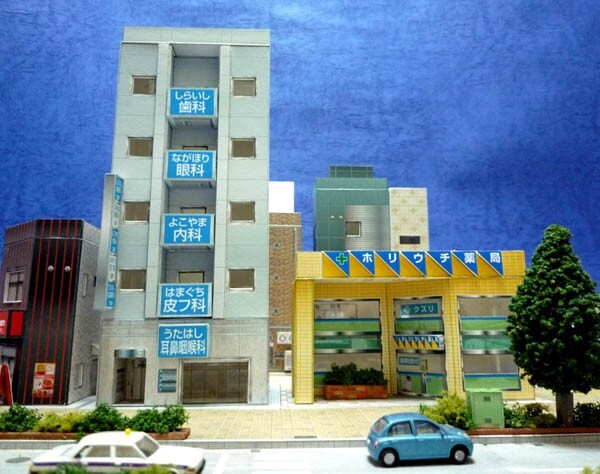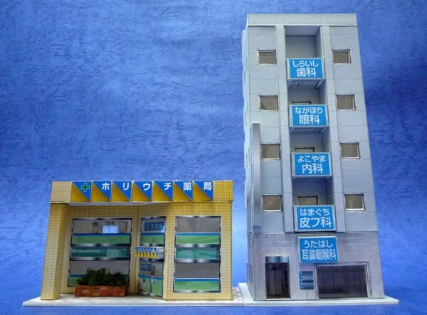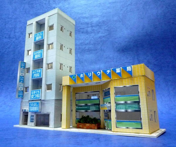 ○自作のNゲージ用ストラクチャーになります。病院と調剤薬局をイメージして作りましたお客様自身で制作するキット商品です。