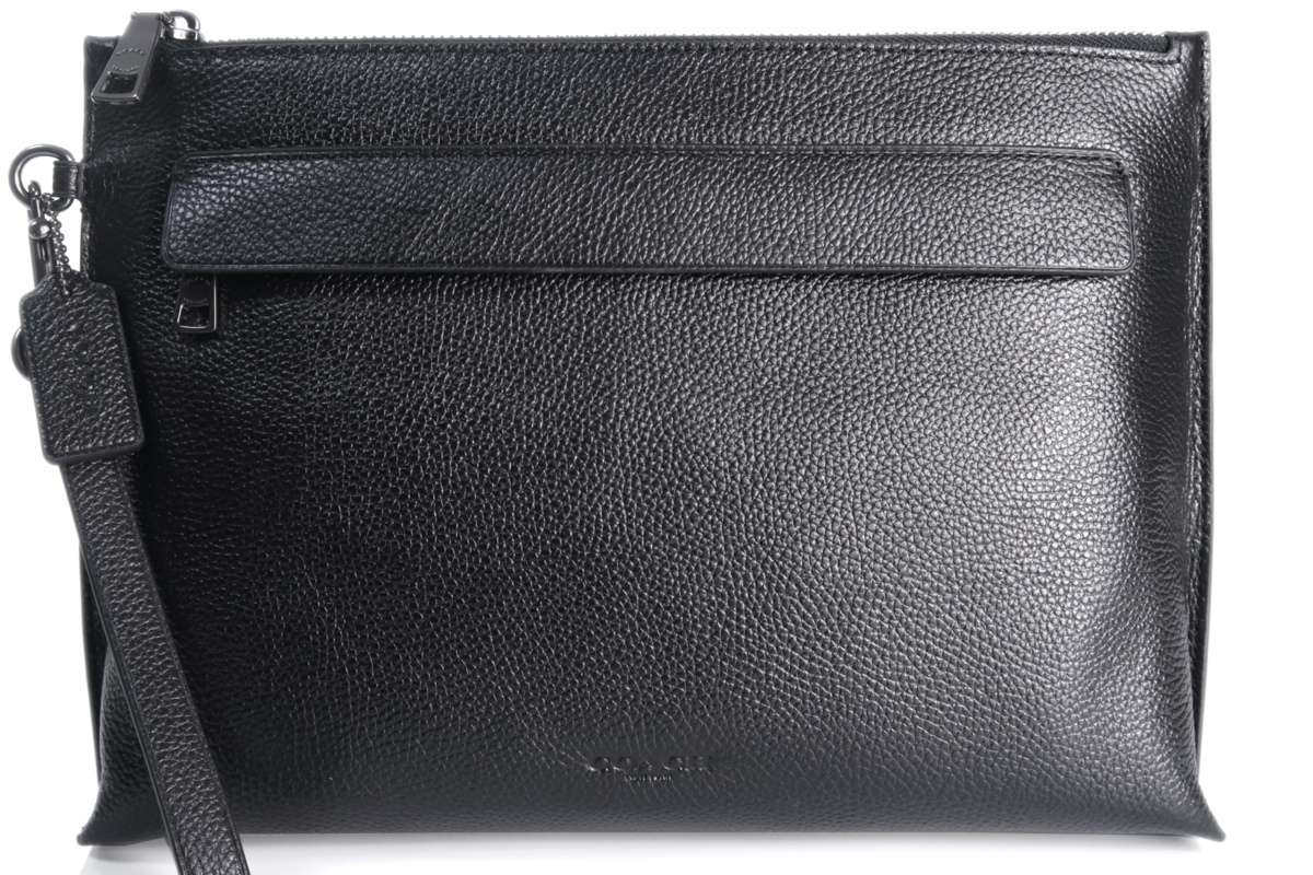 価格5万新品本物コーチCOACH大人気【シボ本革レザーの艶感◎】高級感と機能性を兼備セカンド・クラッチバッグ/ポーチ/ハンドル付/メンズ/黒