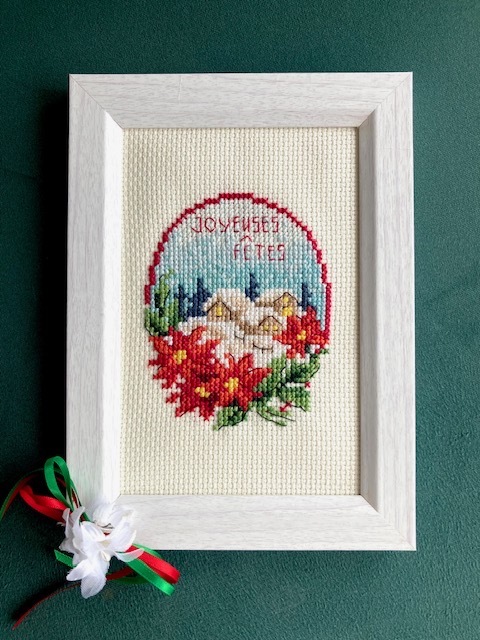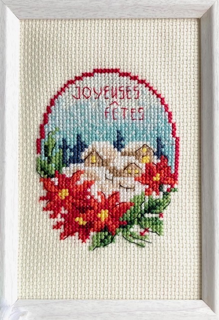 クリスマス・遠くに見える雪景色・クロスステッチ・ハンドメイド・フレーム入り