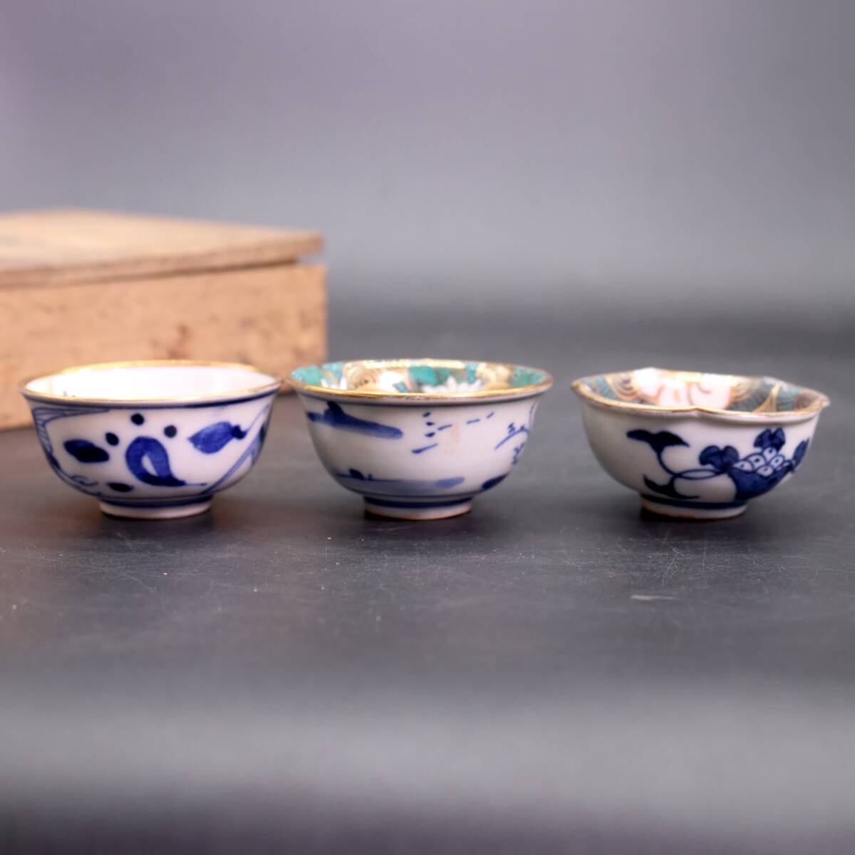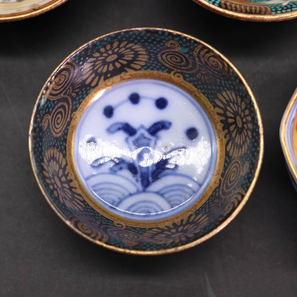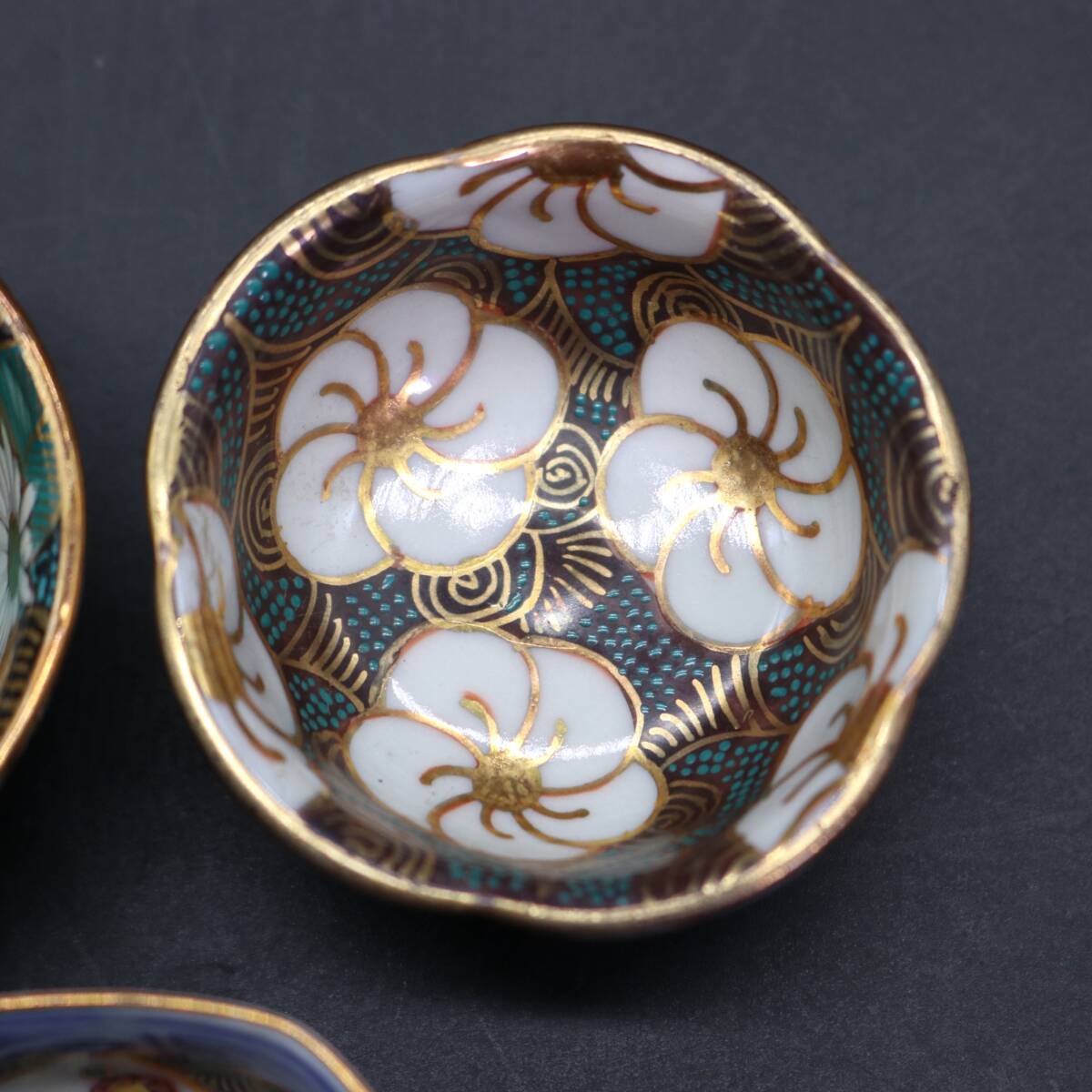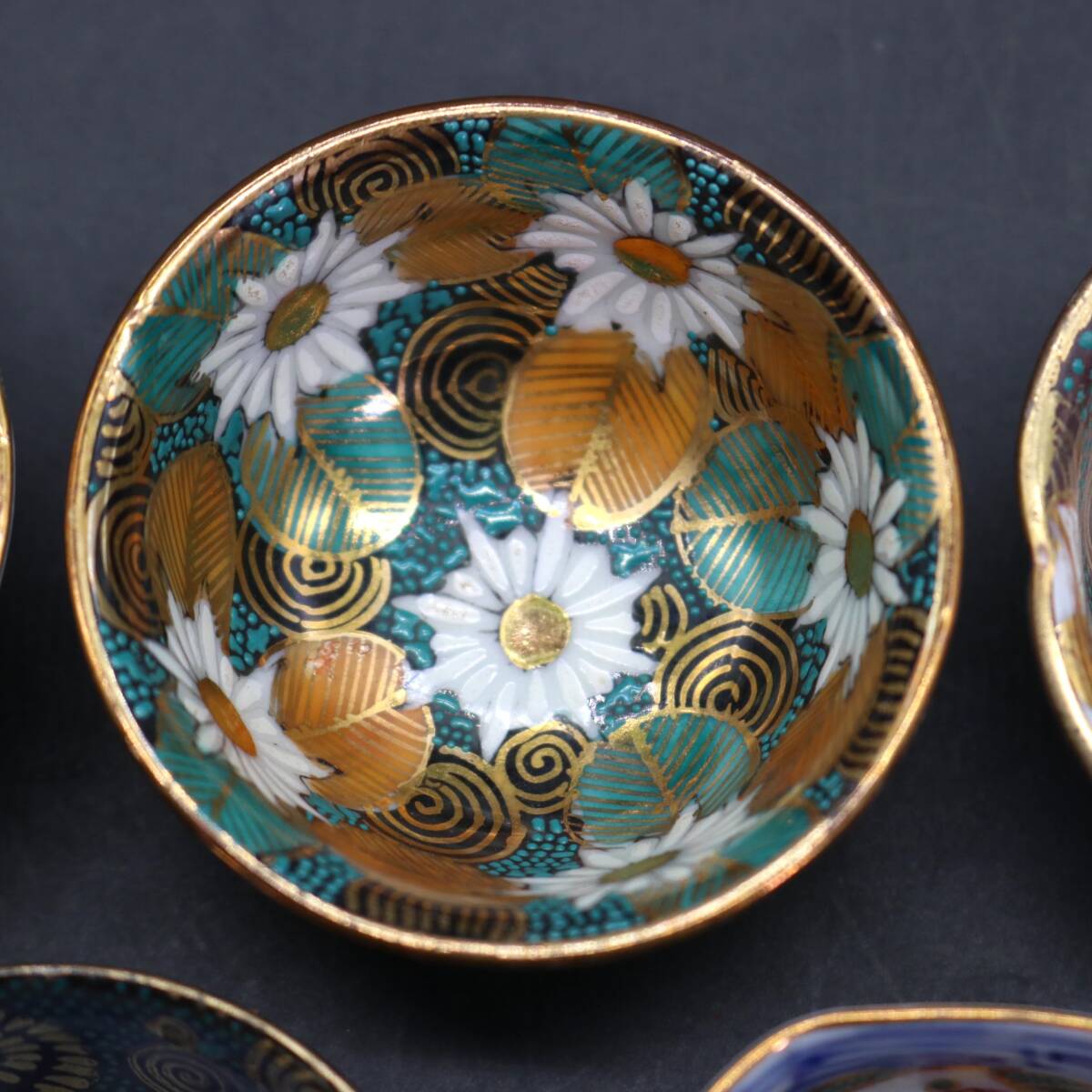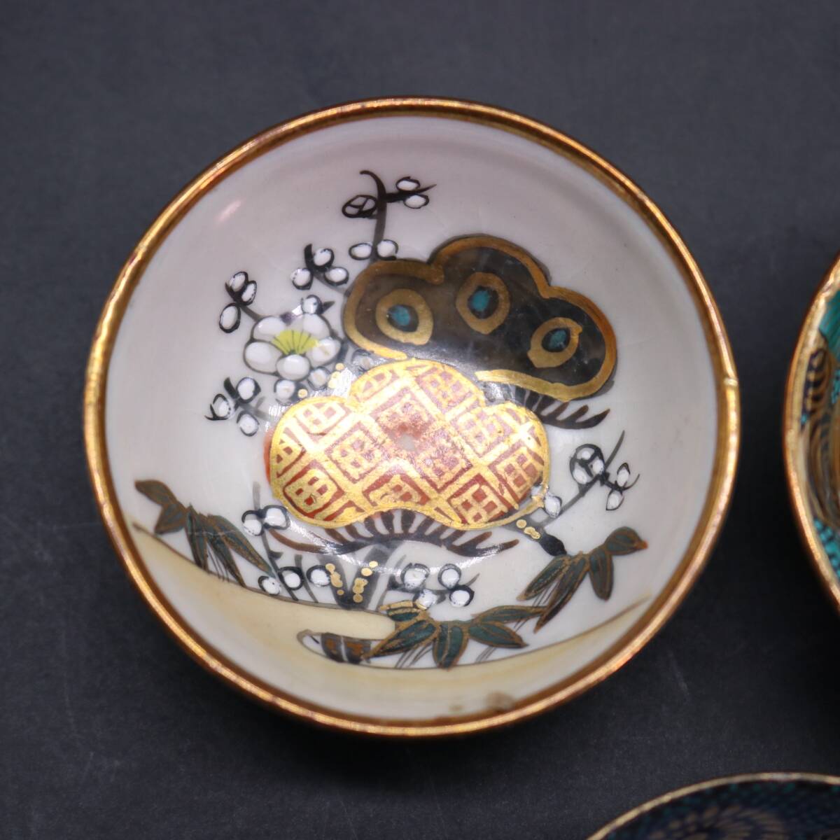 C1018 九谷焼 盃 5客 共箱 国産 金彩 花 手描き 酒器 陶芸 高田商店 骨董品