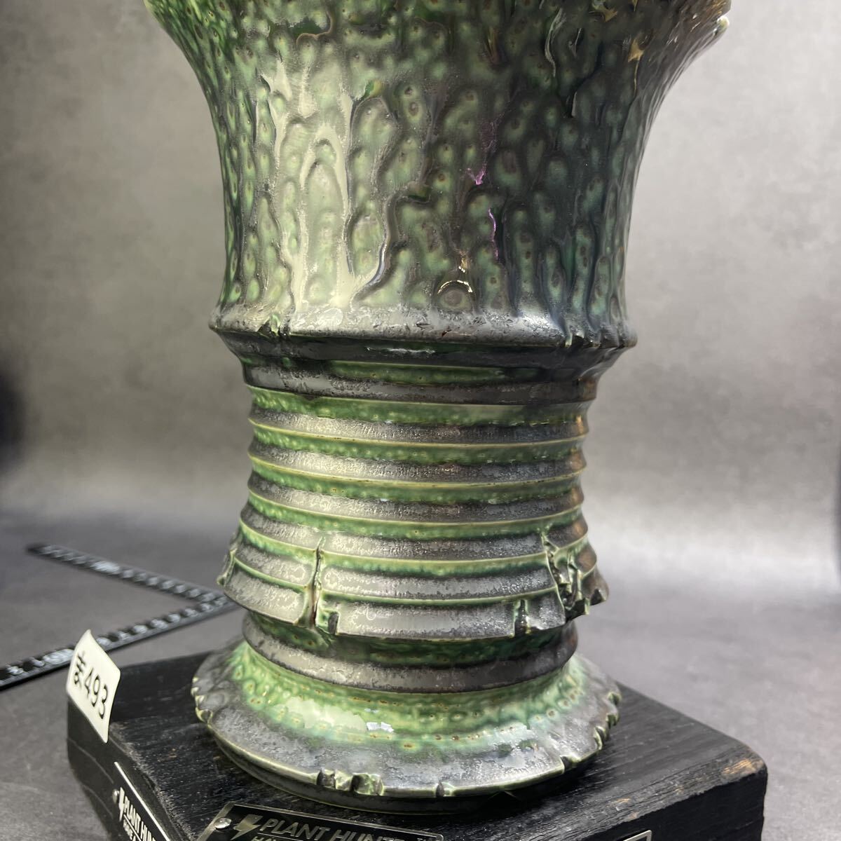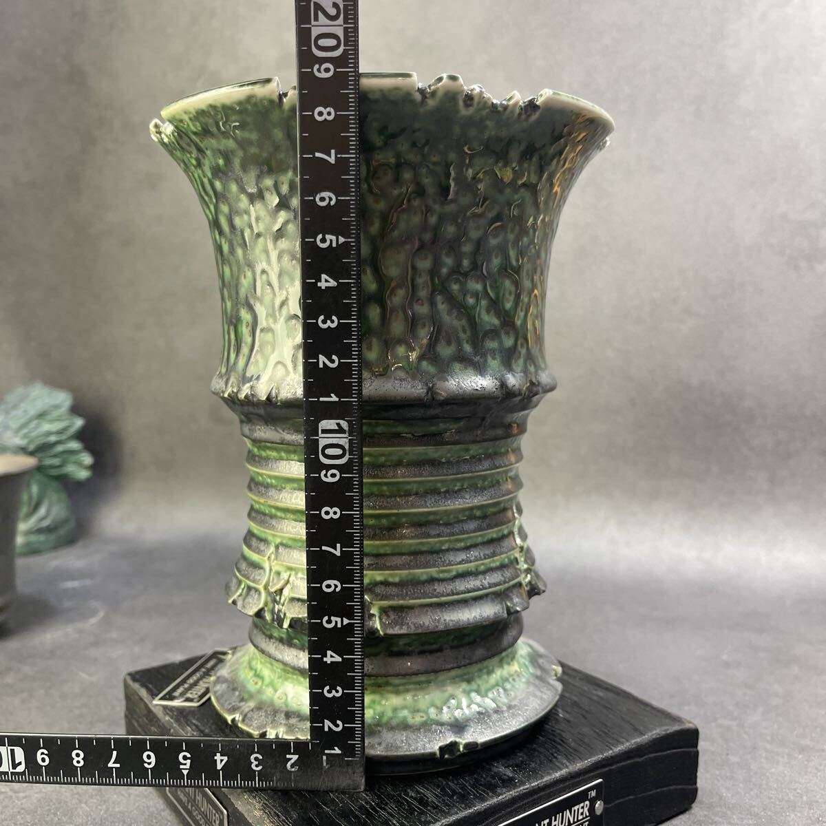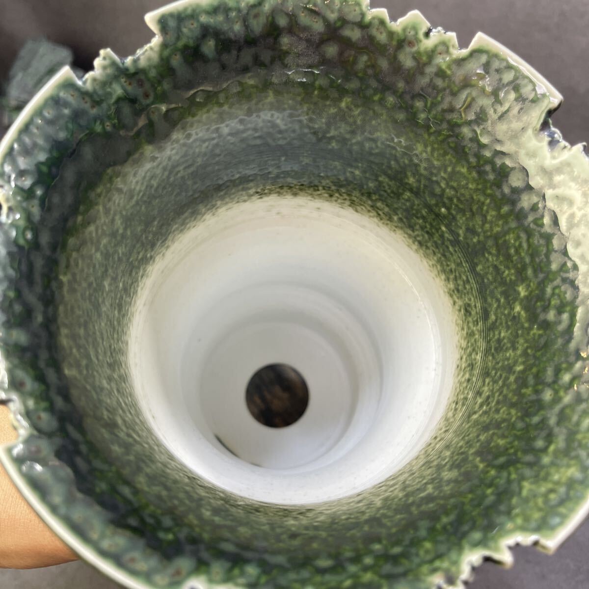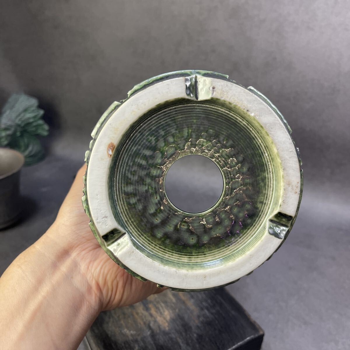 上部の乳白釉が柔らかく流れ、中央の灰藍釉は金属のような光を帯び、