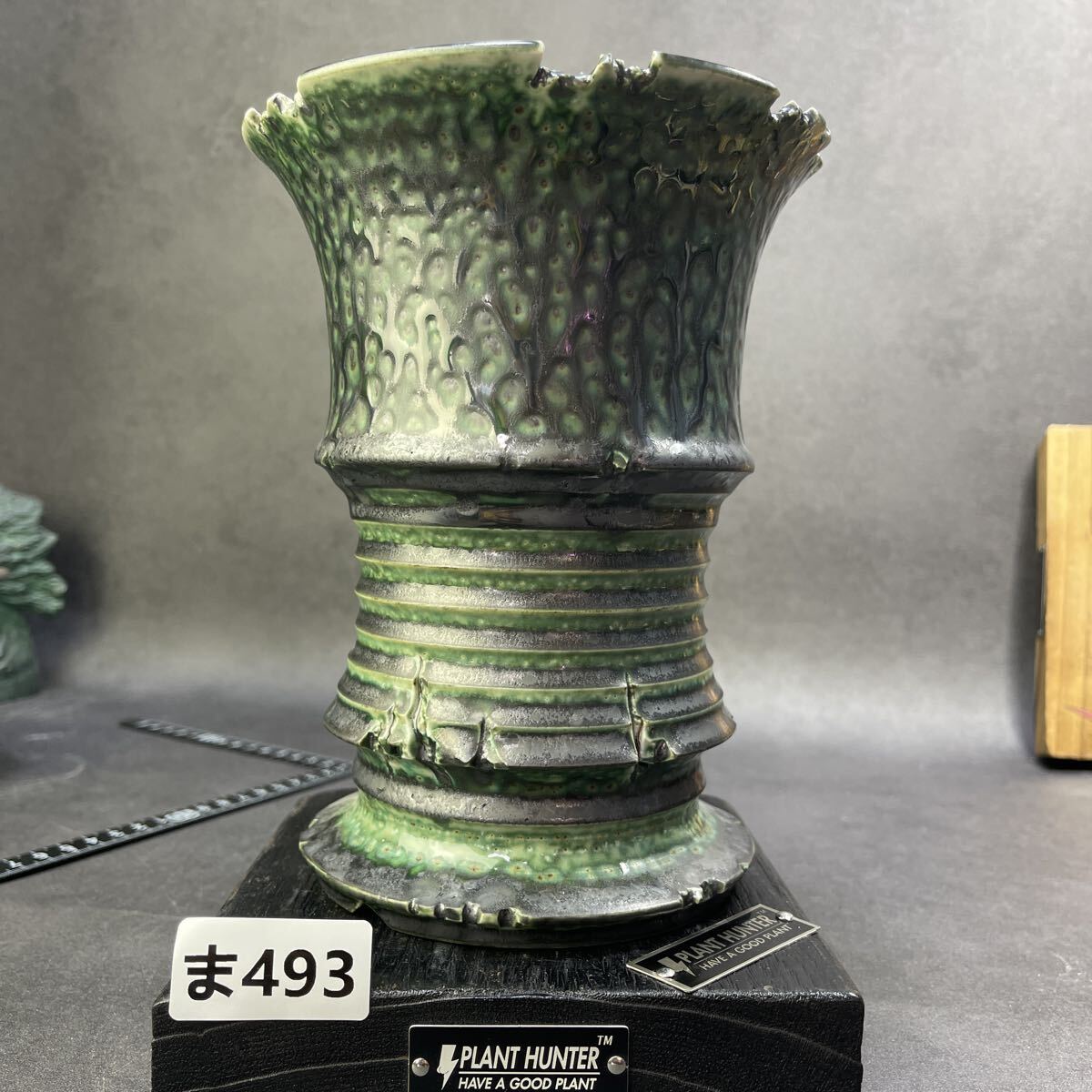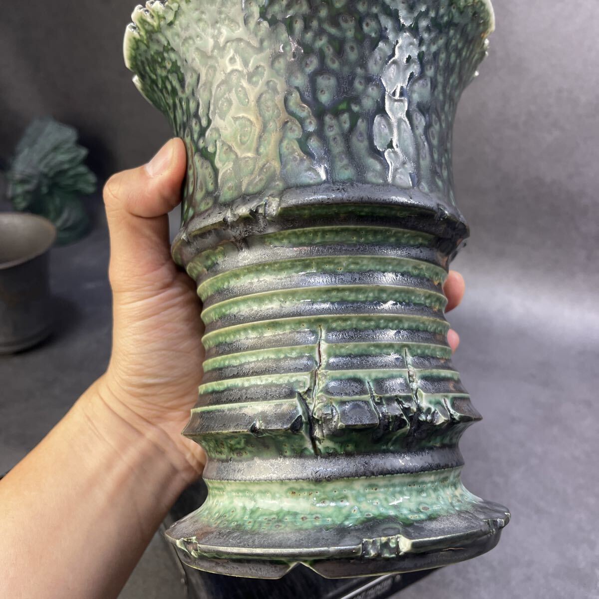 ま493 火山緑窯変 HAND Made XL号 魔界牙 植木鉢 陶器検(アガベ パキプス 姫巌竜 帝釈天 黒火焔 factory SRL カタチ製作所 グラキリス