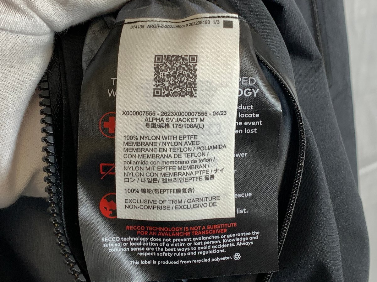 【商品名】ARC’TERYX アークテリクス Alpha SV Jacket X000007555 サイズ:L アルファSV ナイロン ジャケット ブラック☆良品☆[687-0913-2E9] | |||||