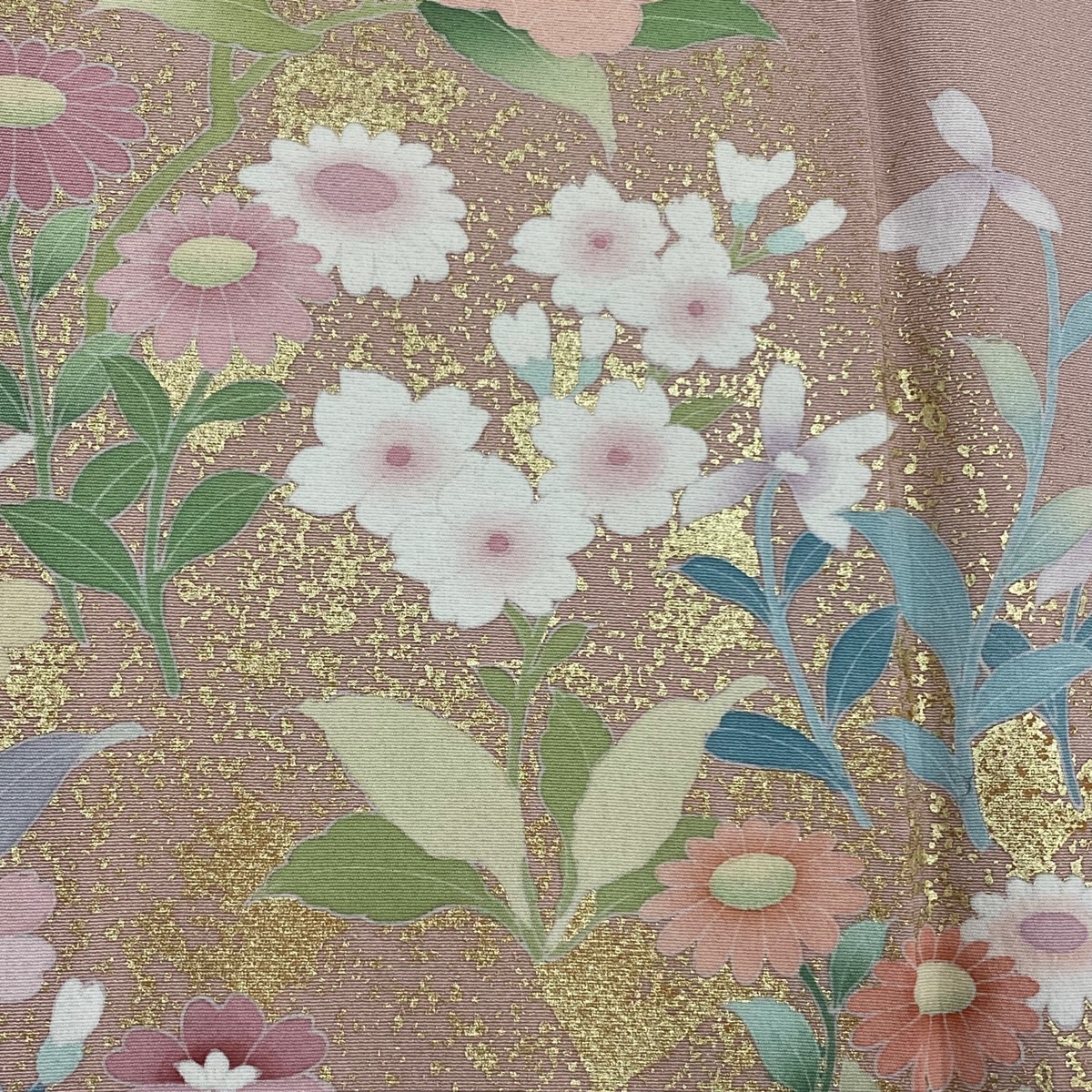 | 訪問着 秀品 草花 金彩 ぼかし 薄ピンク 袷 身丈155 裄丈63 S 正絹 【中古】 |