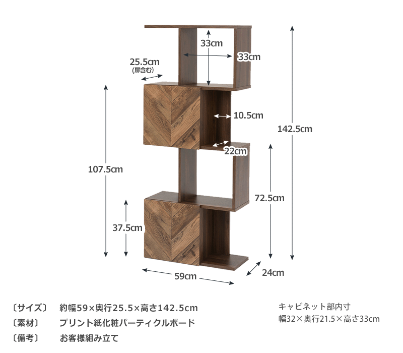 約幅59×奥行25.5×高さ142.5cm