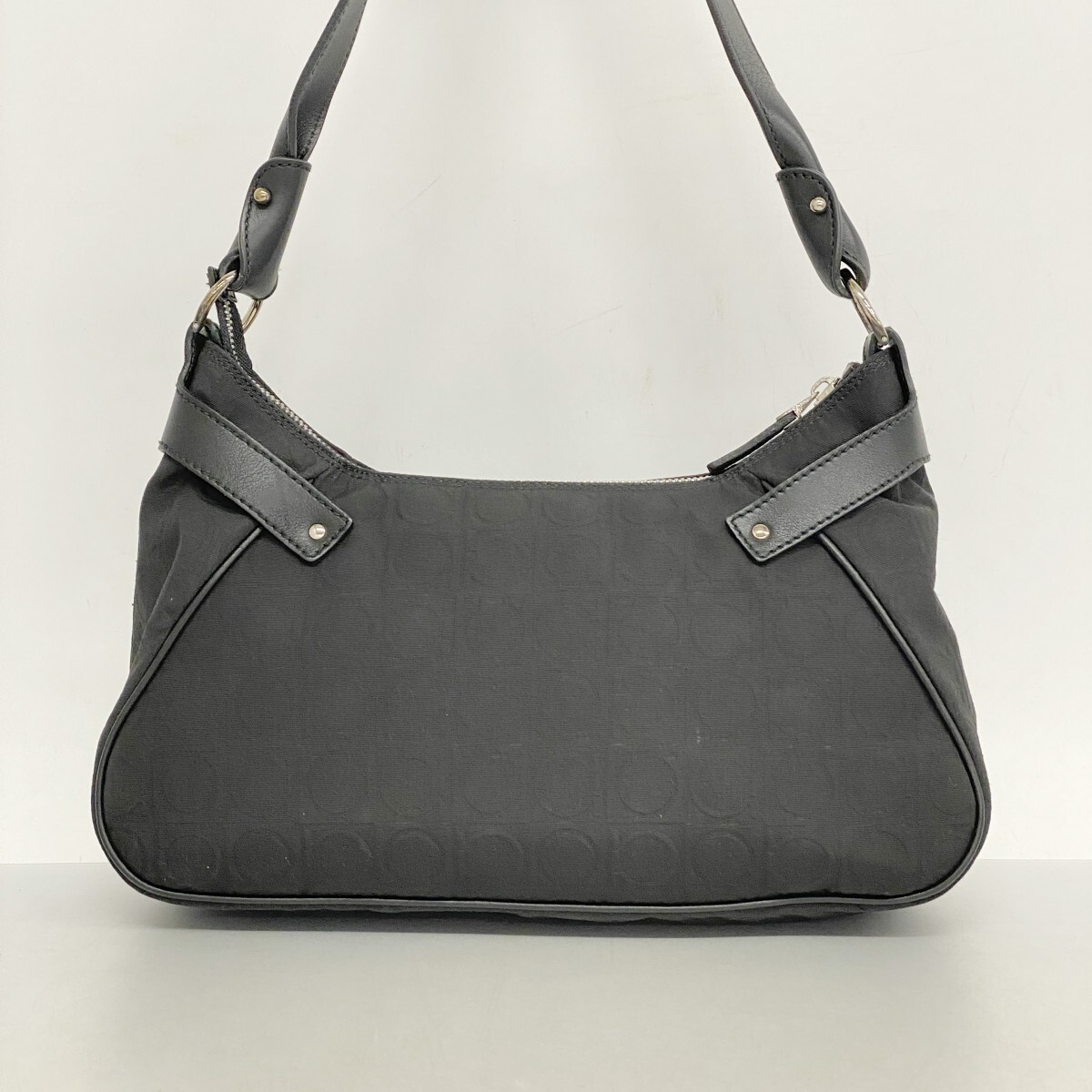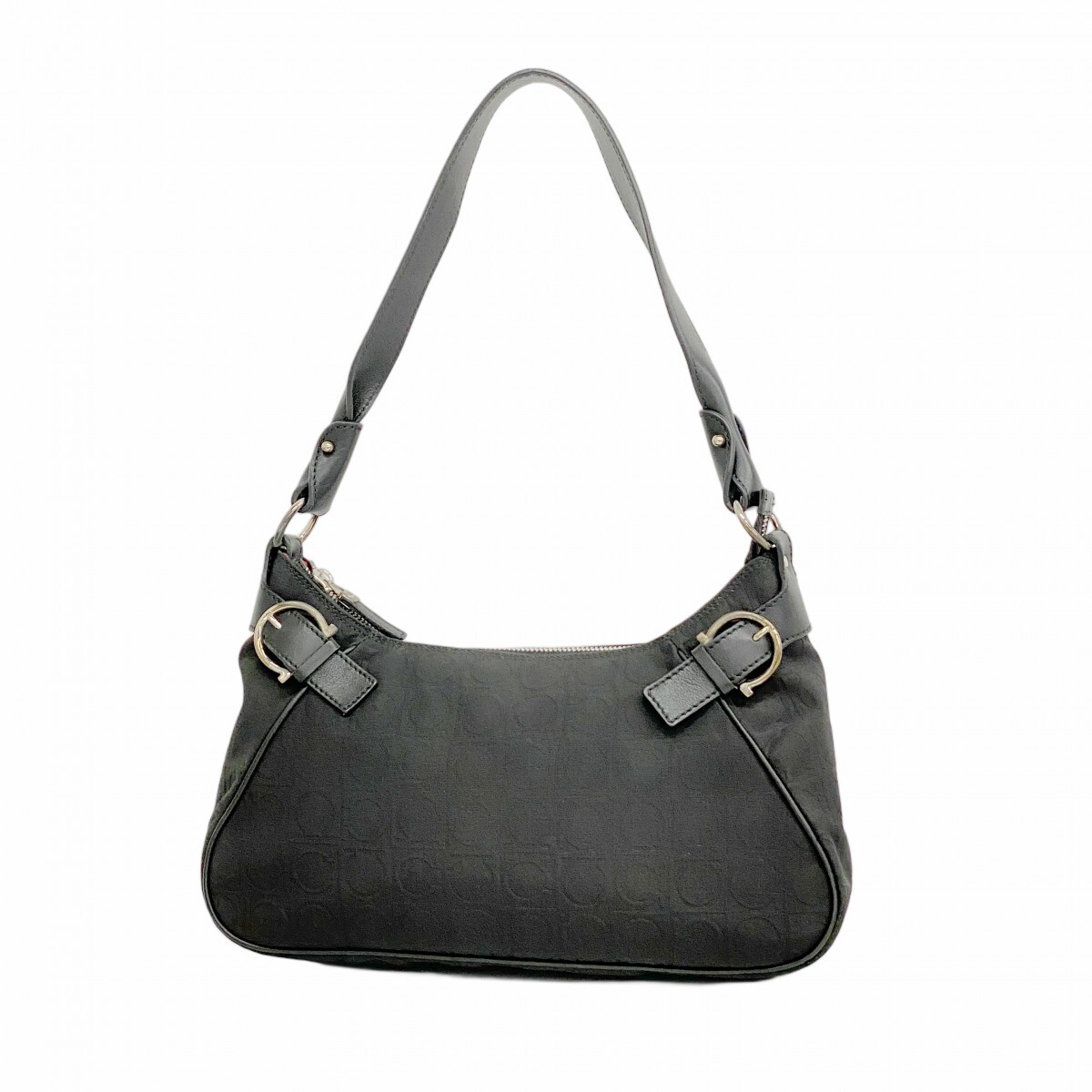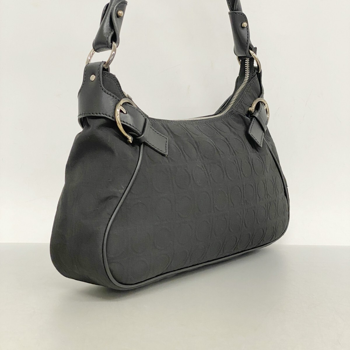 【5mb1437-h】サルヴァトーレフェラガモ ショルダーバッグ ガンチーニ ナイロン ブラック シルバー金具【中古】レディース
