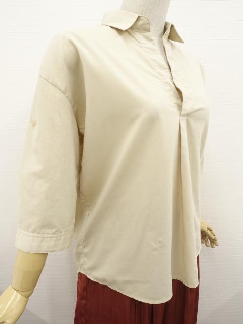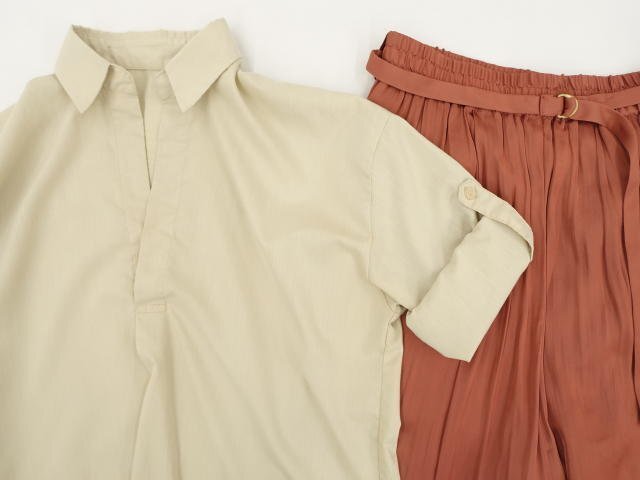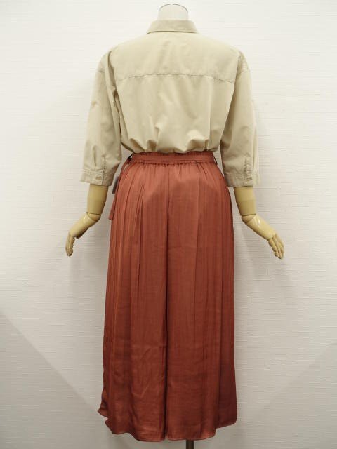 洗える七分袖プルオーバーブラウス+ワイドパンツ コーディネート上下2点セット M相当 ベージュ/ブラウン系 シンプル・カジュアル系 20~30代