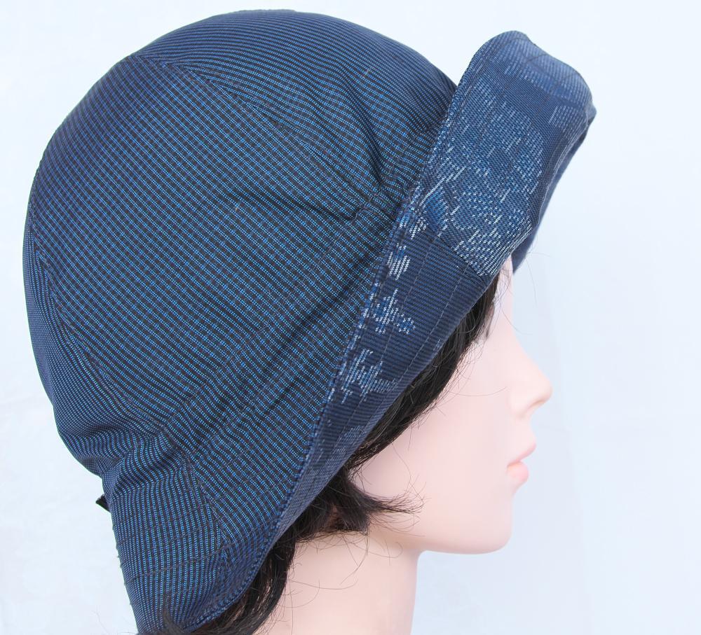 ○表地も裏地も正絹大島紬です。 ○素人のハンドメイドですから、完璧を求められる方はご遠慮ください。 ○チューリップハットの型紙をアレンジしたもので、ツバは、前は約10cm、後ろは5cmほどです。ツバの部分には接着芯が貼ってありますので、しっかりしています。 ○裏の後ろ中央にゴム調節口があります。 ○コサージュは安全ピンでとめてありますから、外すことができます。 ○コサージュを付け変えれば、リバーシブルでご使用いただけます。 ○素人のハンドメイドにご理解いただける方、よろしくお願いいたします。 | ||