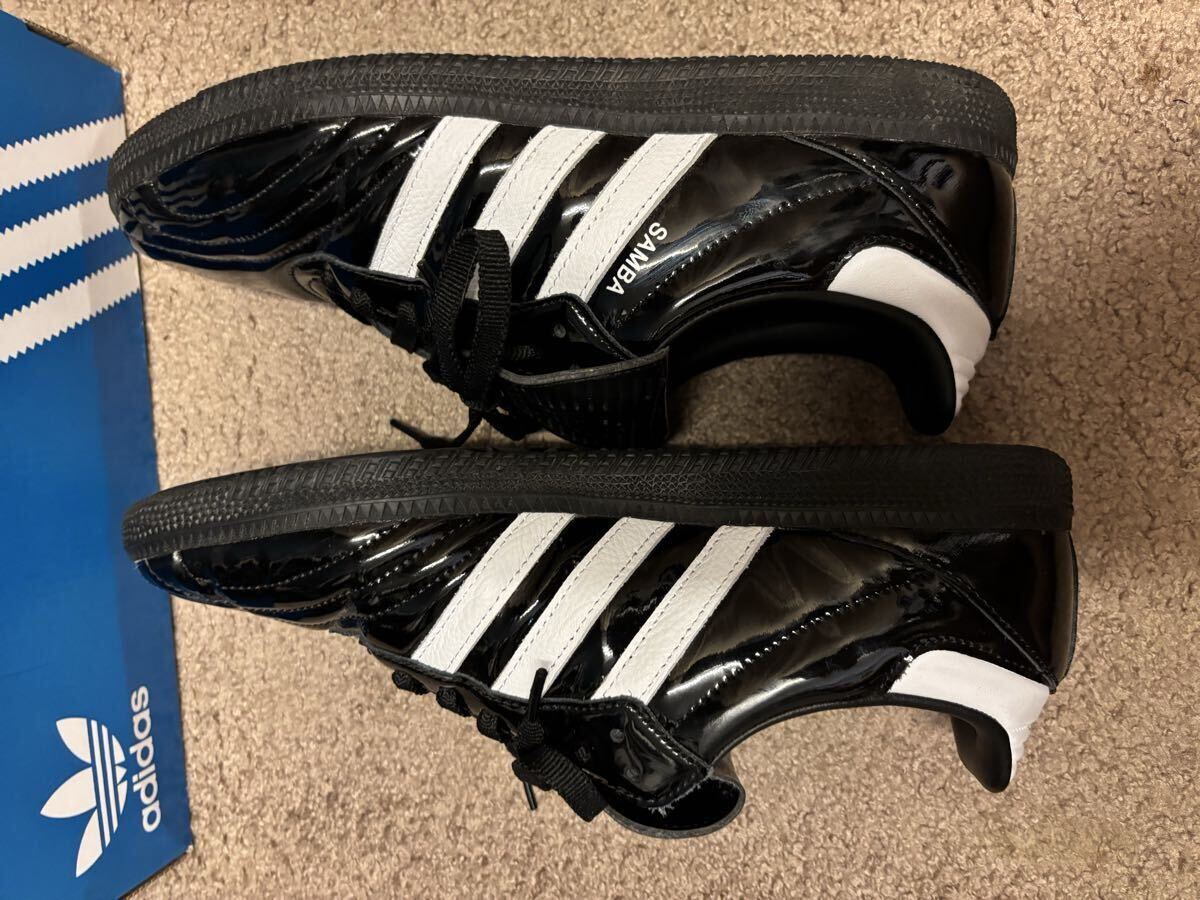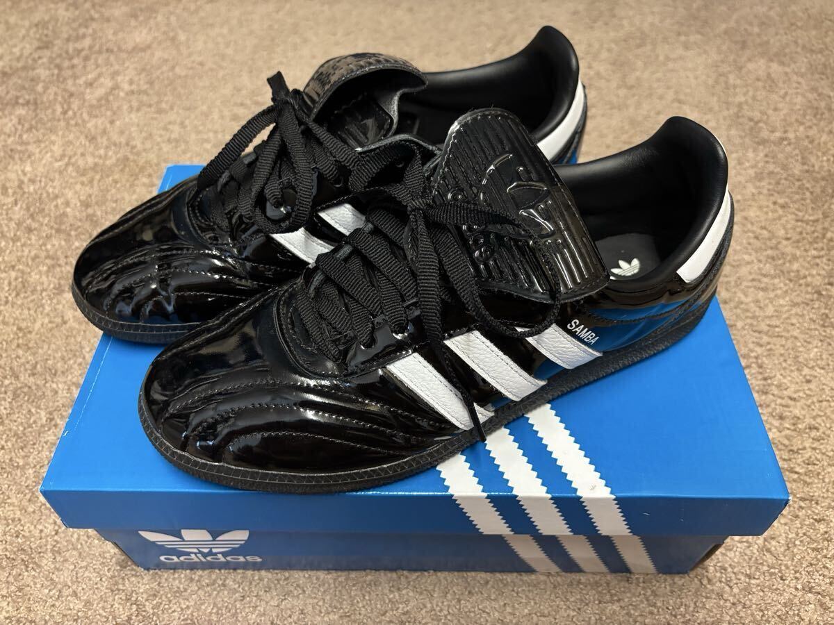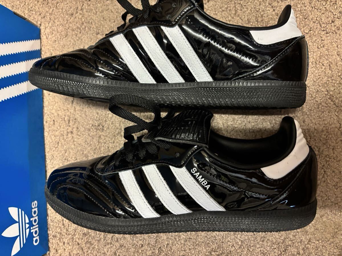 アディダスのフットボールアーカイブへのラブレター。サンバLTシューズは、オリジナルデザインを思わせる折り返しタンと、80年代モデルを彷彿とさせるステッチラインが特徴です。このバージョンは光沢のあるパテントレザーで仕上げられており、ジーンズやよりフォーマルなコーディネートにも簡単に合わせることができます。
