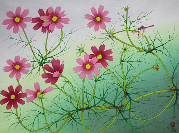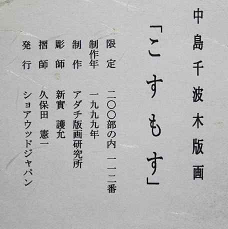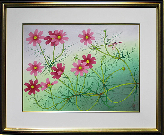 ■中島千波 【こすもす】 アダチ版画研究所 木版画 直筆サイン 印章有り エディション有り