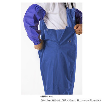 | 厚み0.35mmPVCシートとトリコットを貼り合わせた、肌触りの良いソフトな履き心地のサロペット。着脱がしやすいように脇部分にボタン付きのマチが付いています。作業時に膝をついても破れにくい、ひざ部分補強仕様。しっかりした厚みの生地で寒さから守り、土木、現場作業を快適にサポートします。 ※腕カバーは別売りです。 |