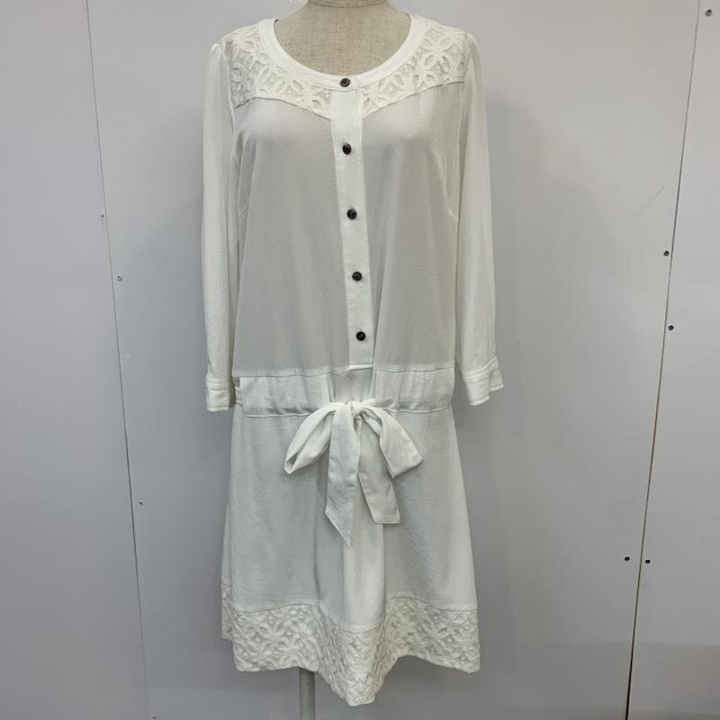 LAUTREAMONT 38 ロートレ・アモン ワンピース ひざ丈スカート 七分袖 無地 レース柄 One-Piece Medium Skirt 白 / ホワイト / 10037126