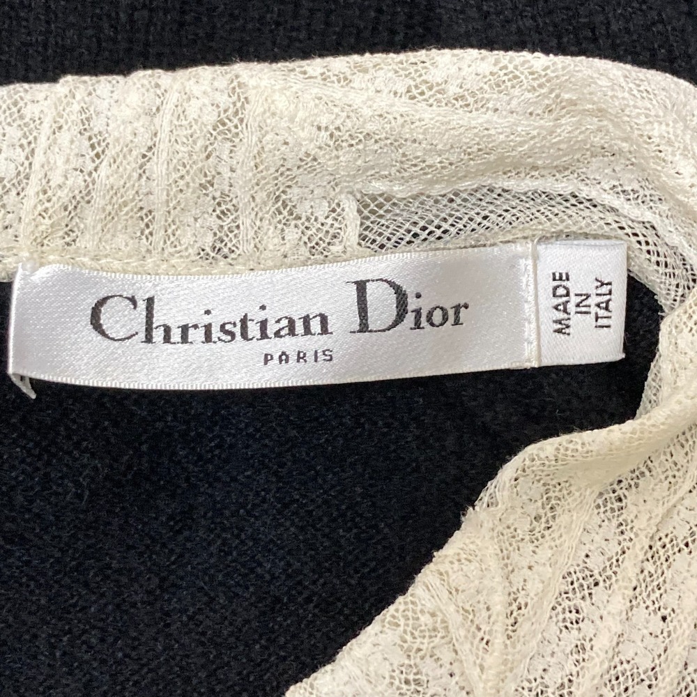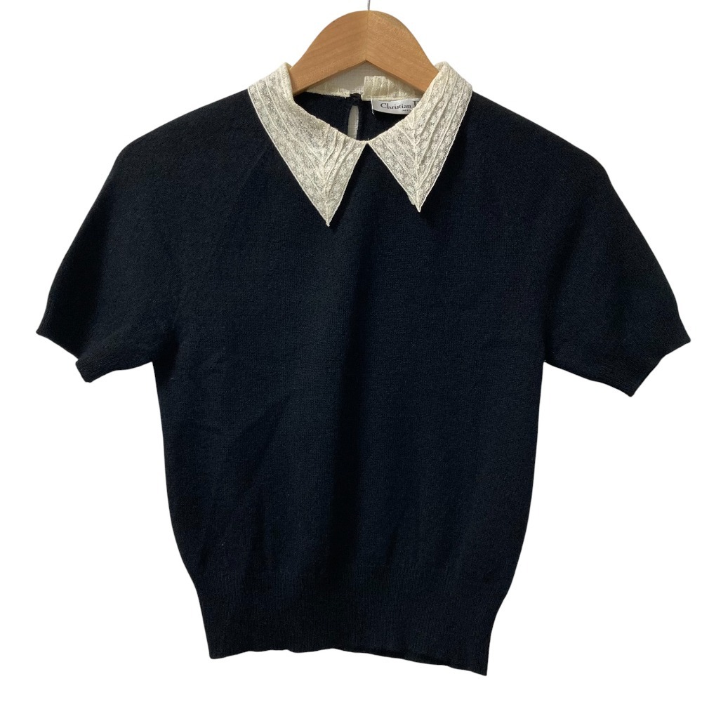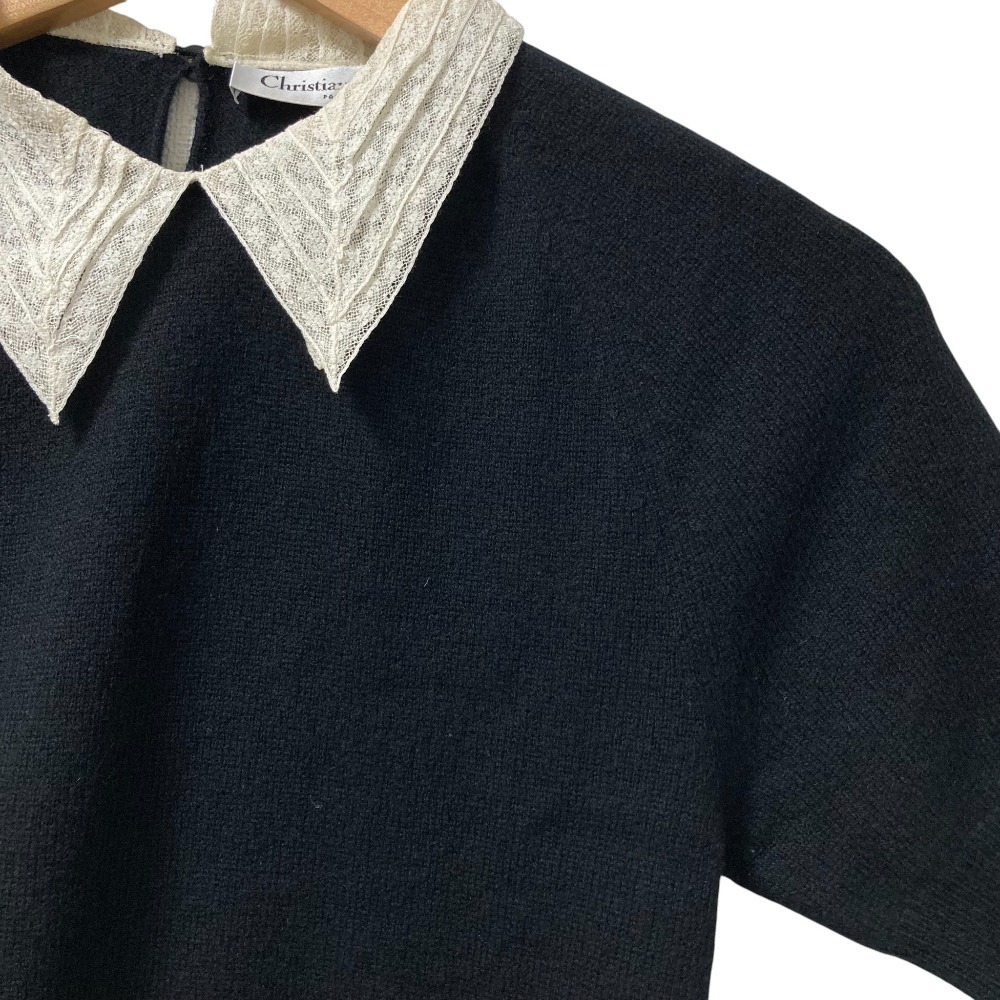 美品 Christian Dior クリスチャンディオール レースカラー カシミア 半袖 ニットセーター サイズI38 ブラック