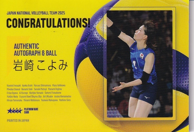 女子バレーボール日本代表2025 岩崎こよみ Wレア 直筆サインボールカード 10/20