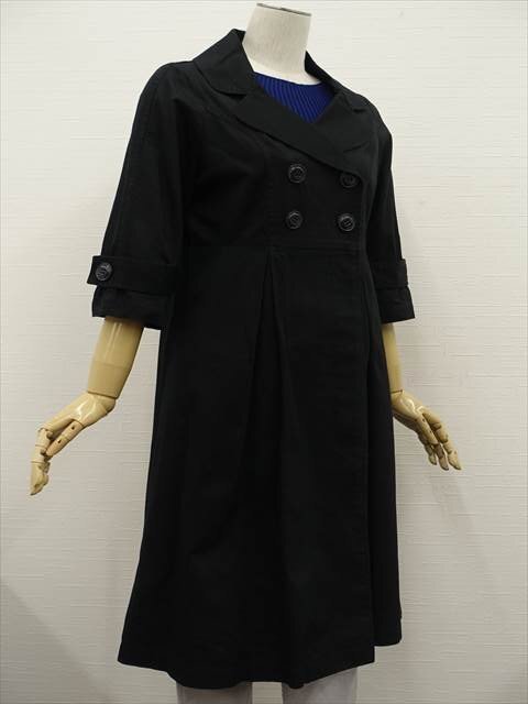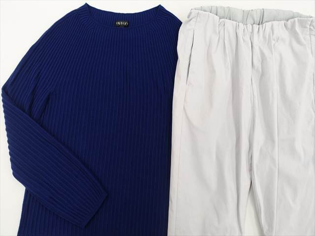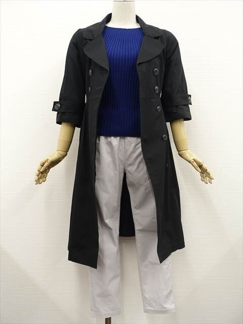 七分袖コート+長袖ニットカットソー+イージーパンツ コーディネート上下3点セット M相当 ブラック/ブルー/ライトグレー クール系 20代