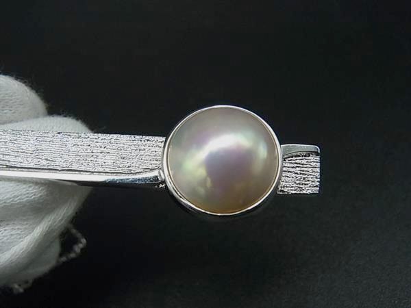 ■美品■ マべパール 本真珠 パール 約13mm SV925 ネクタイピン タイクリップ アクセサリー メンズ シルバー系×アイボリー系 DJ3925