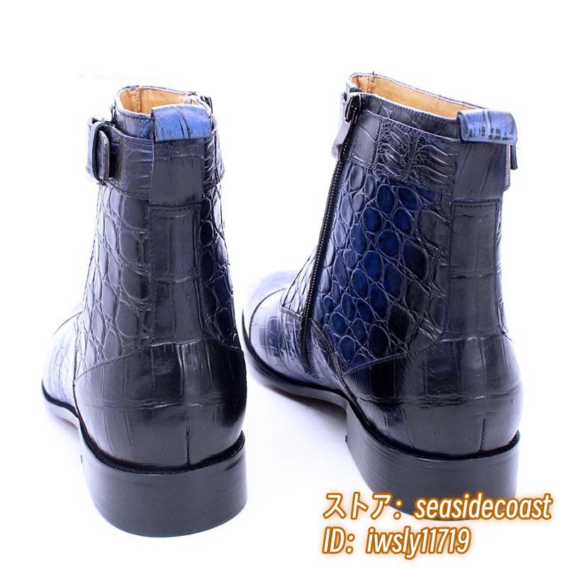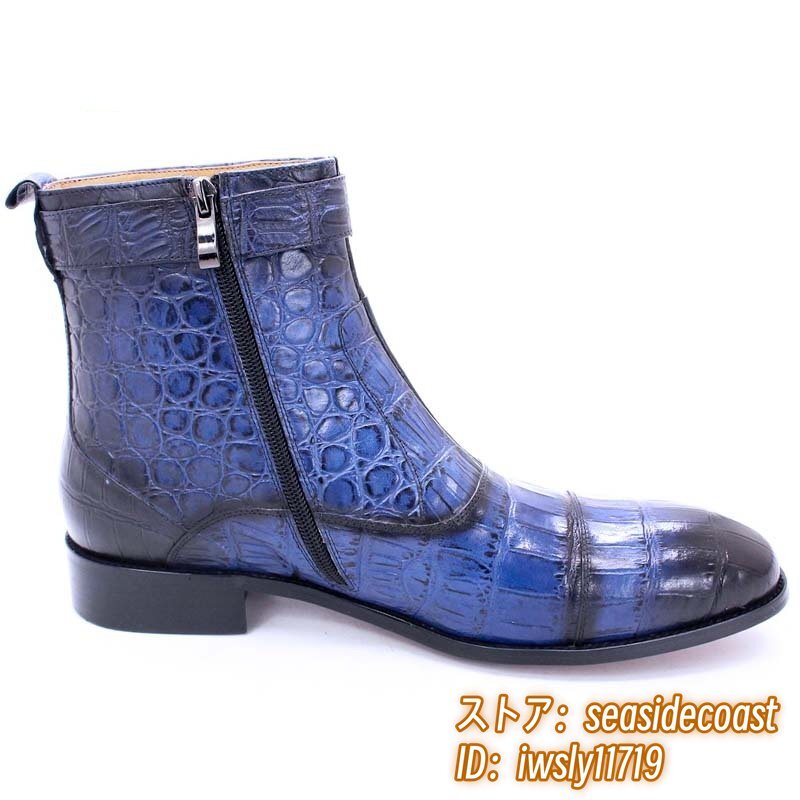 定価12万*超希少 エンジニアブーツ 本革 レザーブーツ メンズ 職人手作り 鰐柄 皮靴 ウェスタンブーツ マーティンブーツ ブルー 27.5cm
