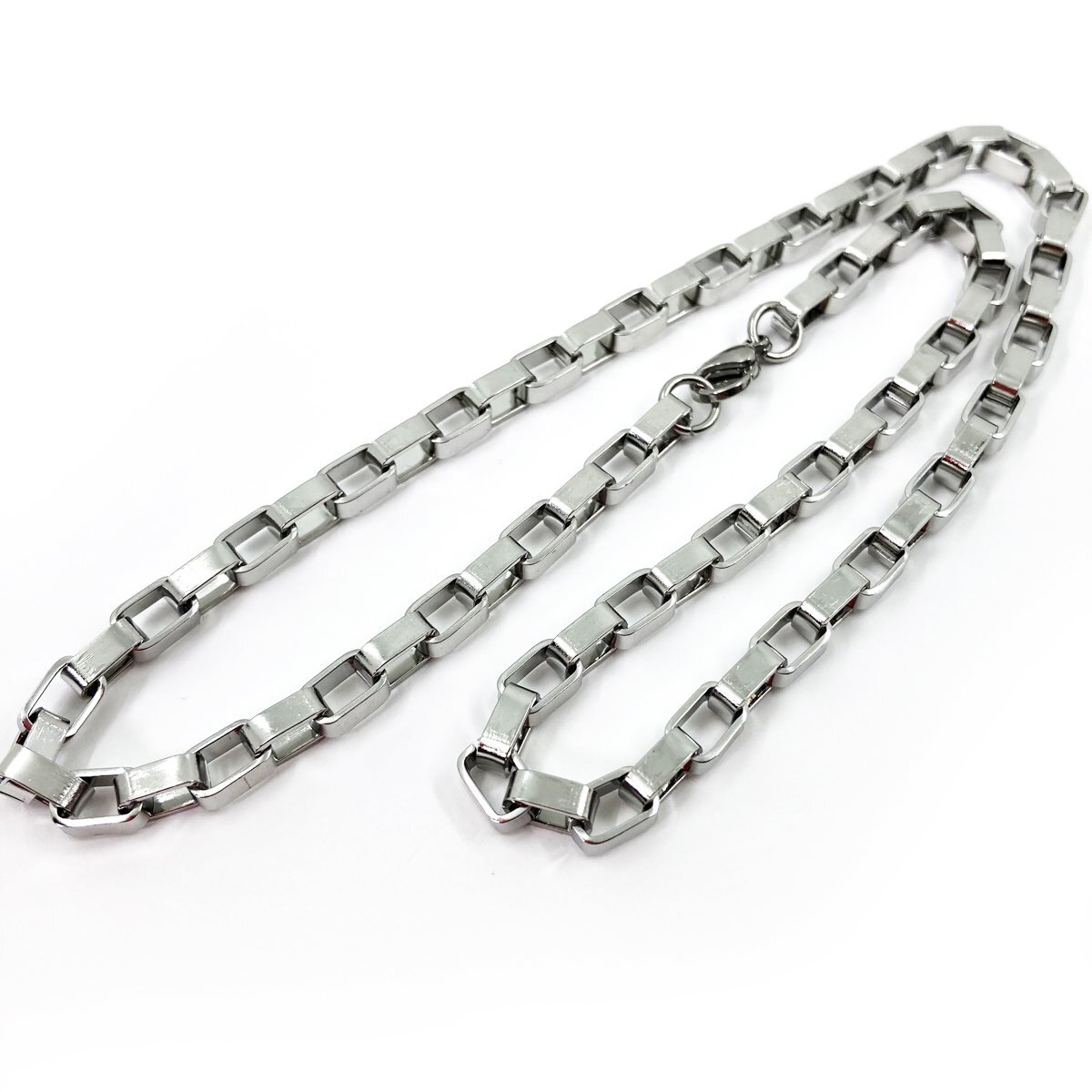 5.3mm幅約37cm  短め チョーカー ボックスチェーン ステンレスネックレス