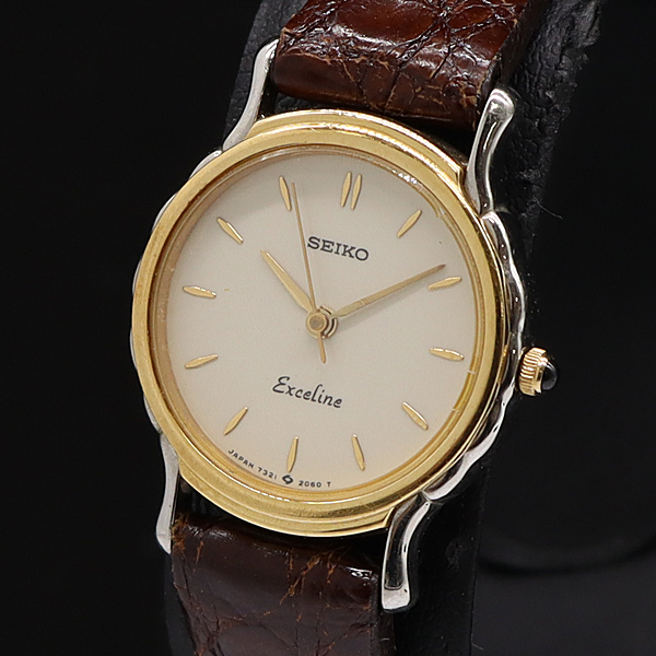 1円 稼働 セイコー エクセリーヌ QZ アイボリー文字盤 7321-0450 YG×SS レディース腕時計 1927000 10NGB KMR