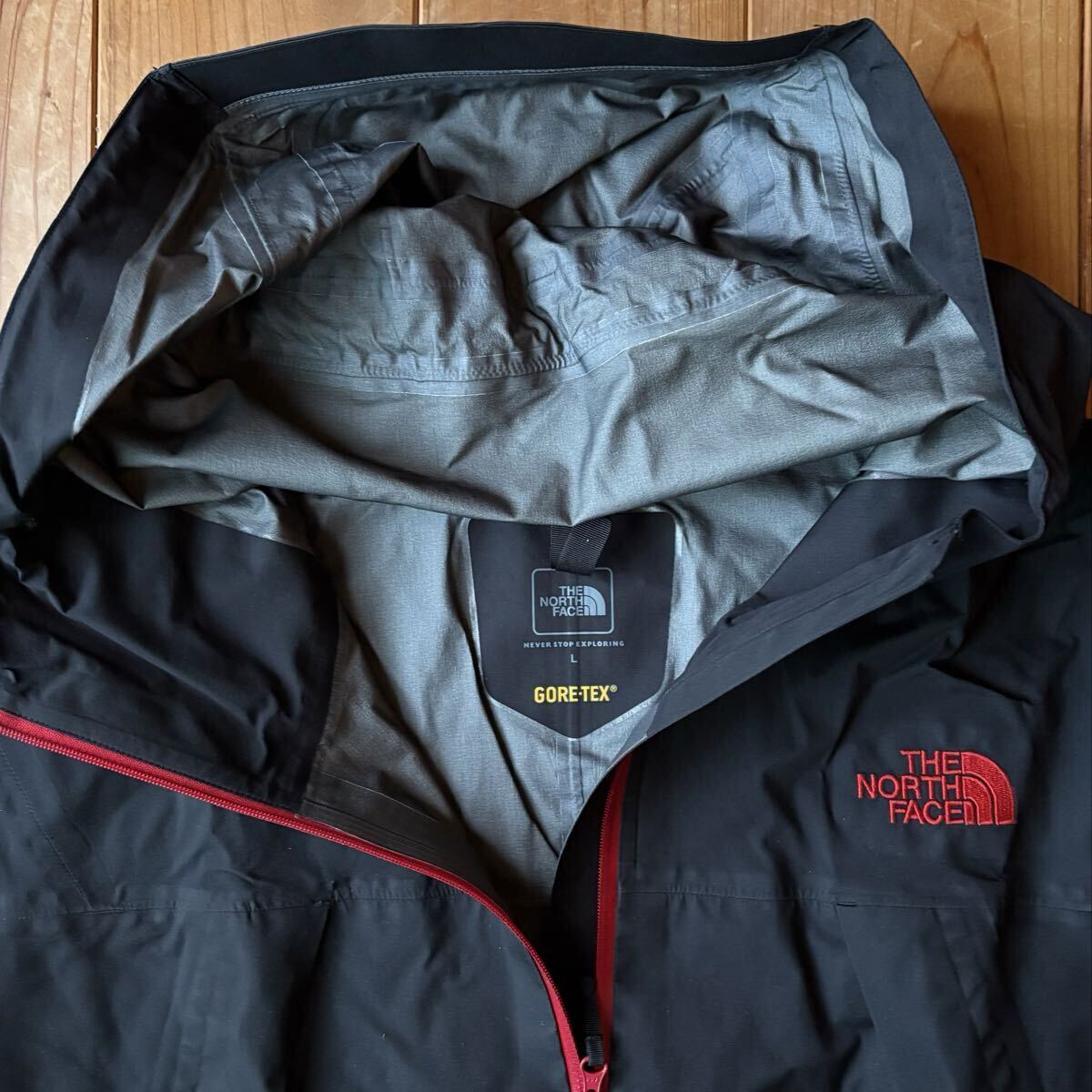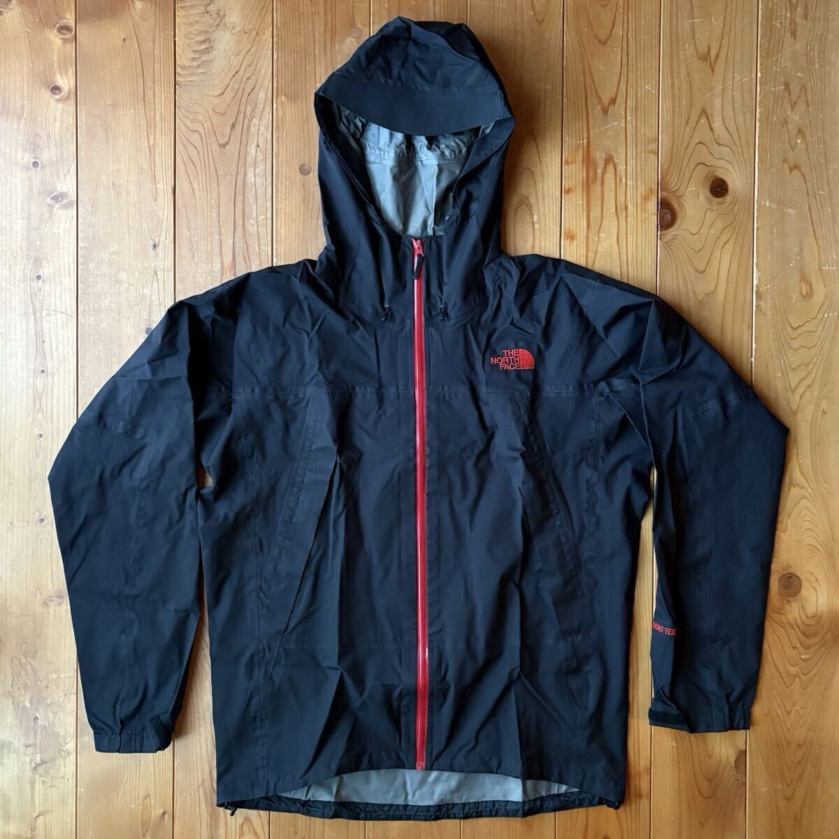 【即決・中古・送料無料】ザノースフェイス クライムライトジャケット メンズL 黒赤 ゴアテックス 雨具 防水透湿 刺繍ロゴ THENORTHFACE
