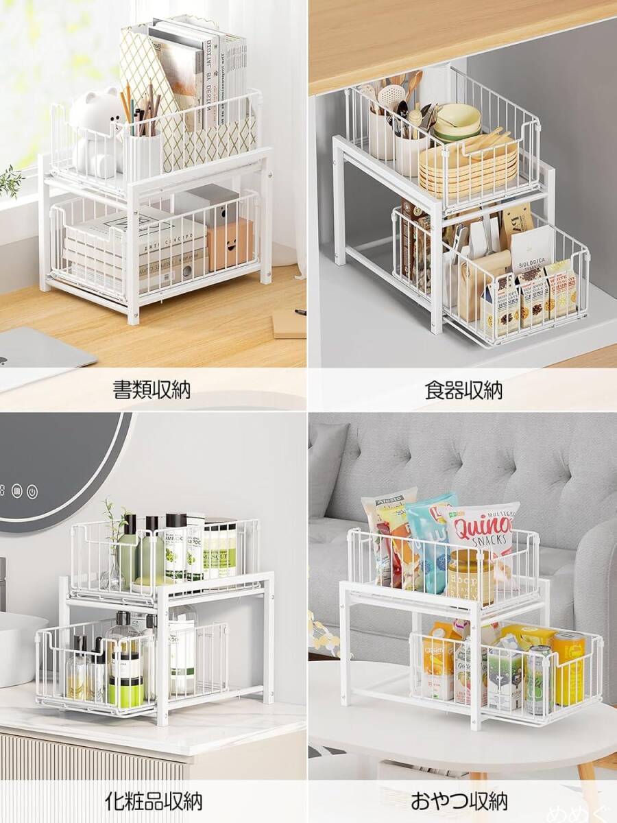 【多機能の収納ラック】台所だけでなく、オフィス、バスルーム、リビングルーム、ベッドルームなどに最適です。卓上の書類、デスクの雑物や化粧品、書斎など、用途に合わせてご使用いただけ、収納力は抜群です。より広いスペースを作ることができます。部屋の隅々を無駄なくて使えましょう。