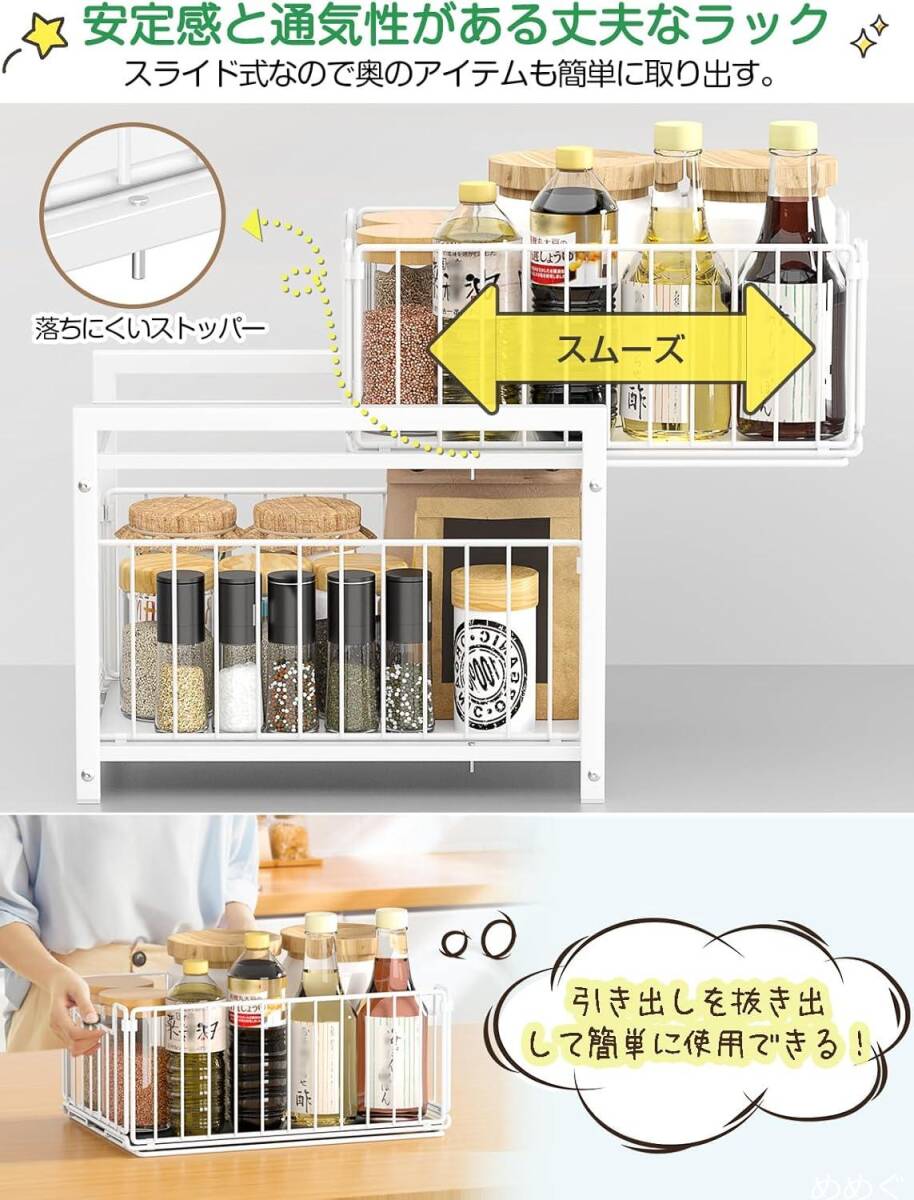 【シンク下収納をすっきり整理】シンク下はスペースがあるのに、ただ、ものが多くてごちゃごちゃしてしまったり、デッドスペースがあったりすることも多いですよね。それで、TKUINシンク下収納スライドが登場!シンク下収納をもっと使いやすくしましょう!