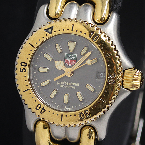 1円 稼働 良品 タグホイヤー セル プロフェッショナル S95.208 QZ グレー文字盤 レディース腕時計 2917200 10DIT SMZ