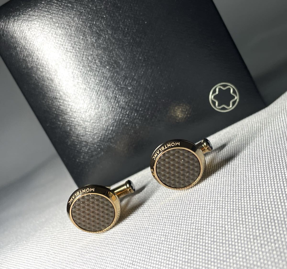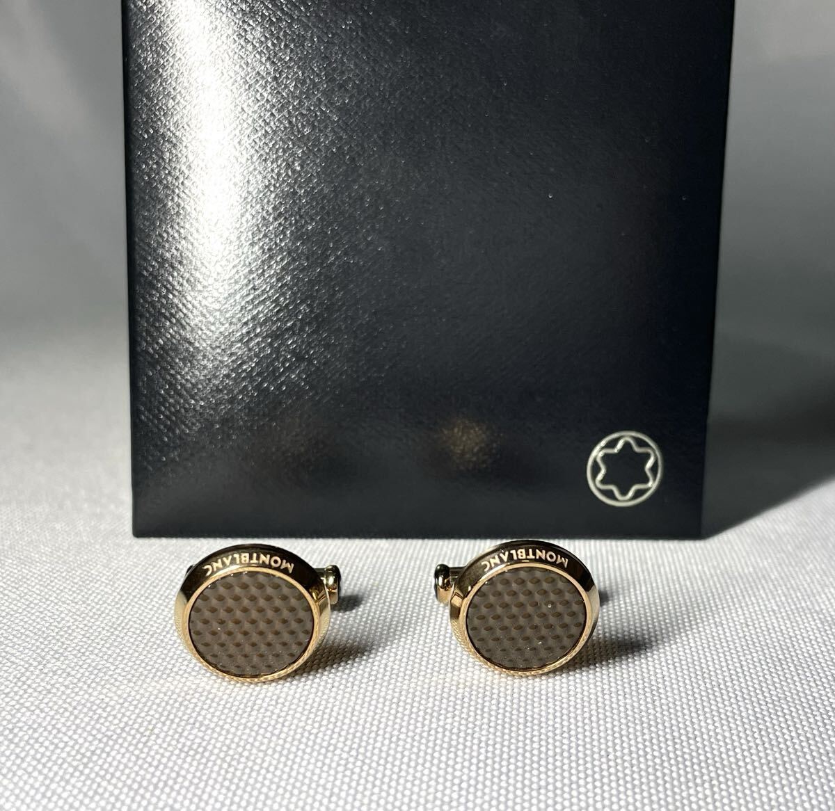 モンブラン パターンライン ブランドロゴ文字 ローズゴールド&ブラウン オーバルカフスです