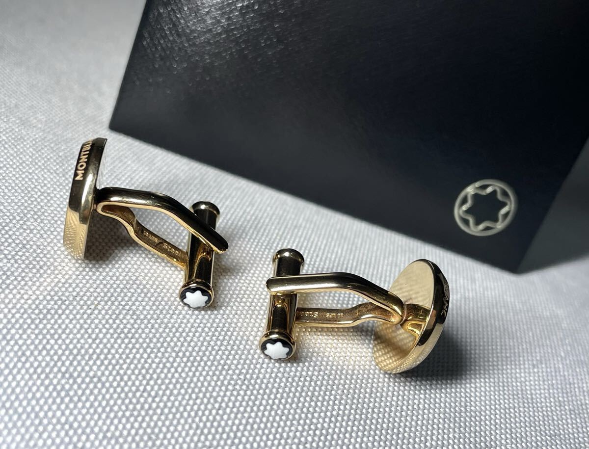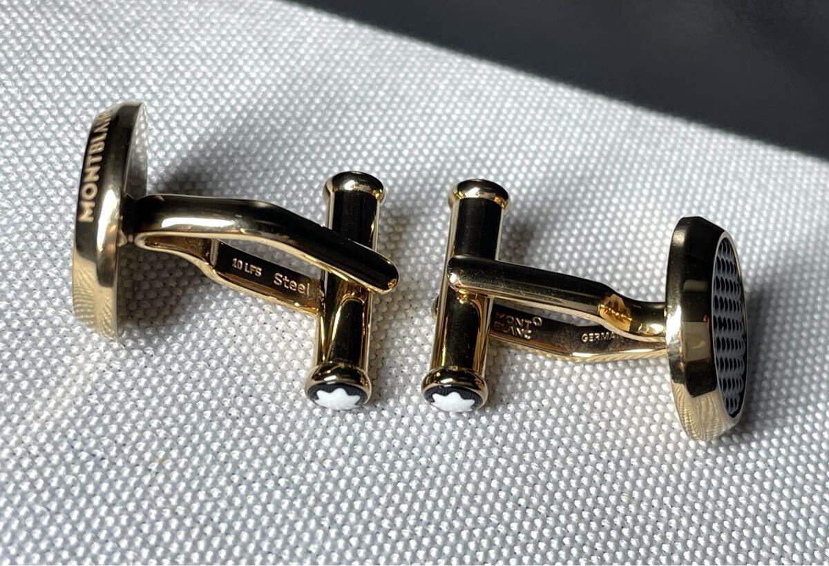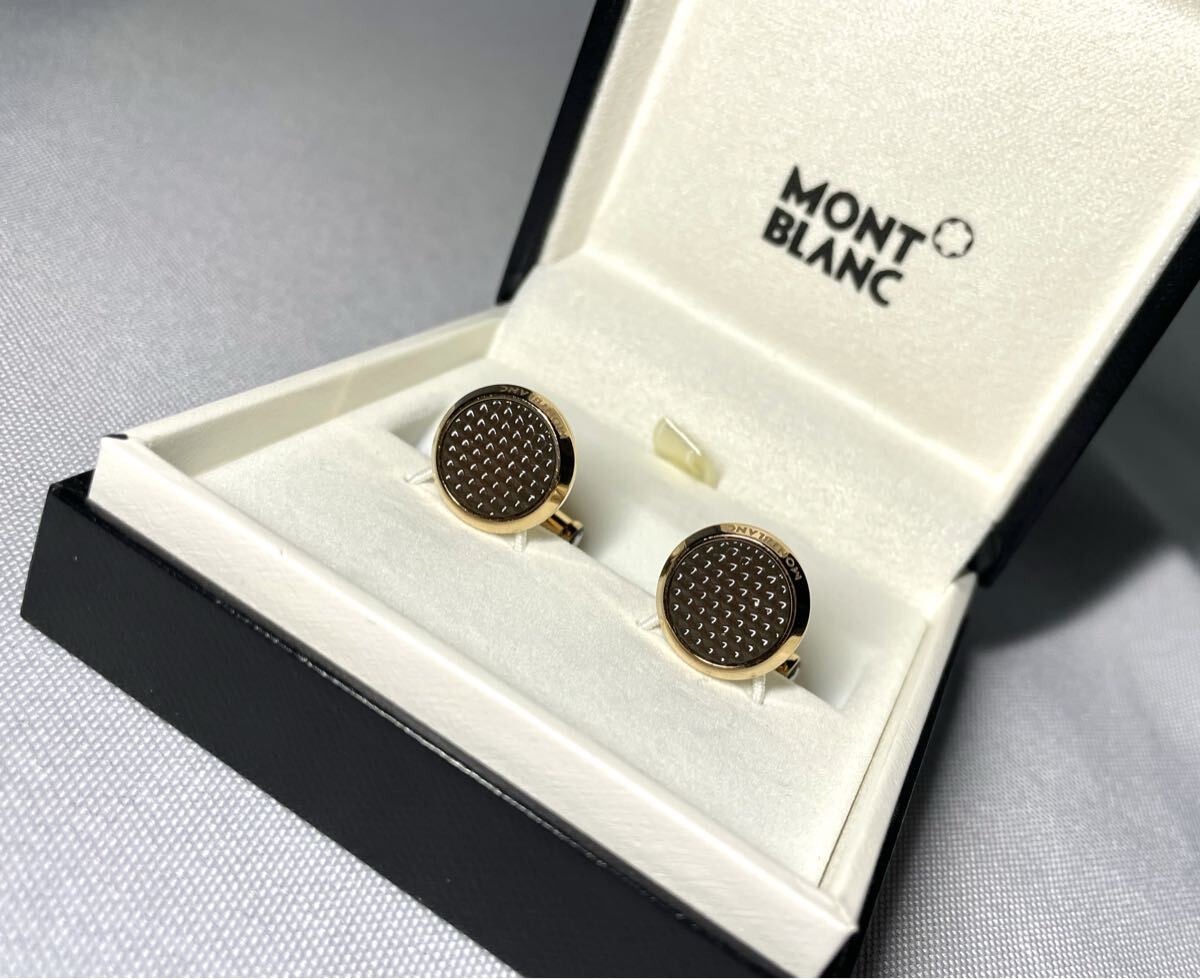 即決美品 希少 MONTBLANC モンブラン パターンライン ブランドロゴ文字 オーバルカフス カフリンクス ボタン ローズゴールド ケースあり