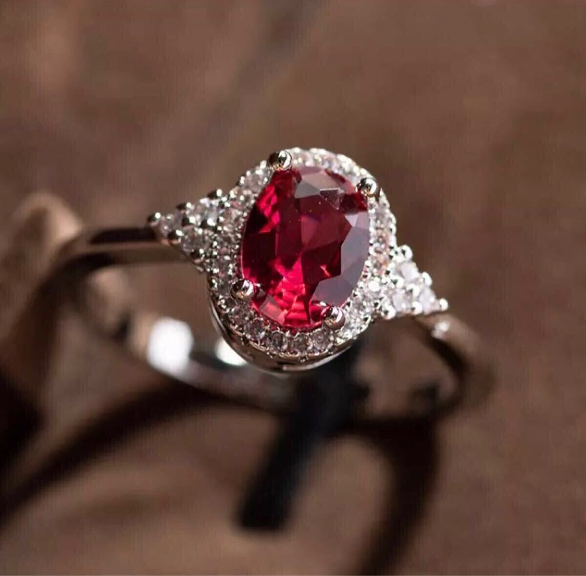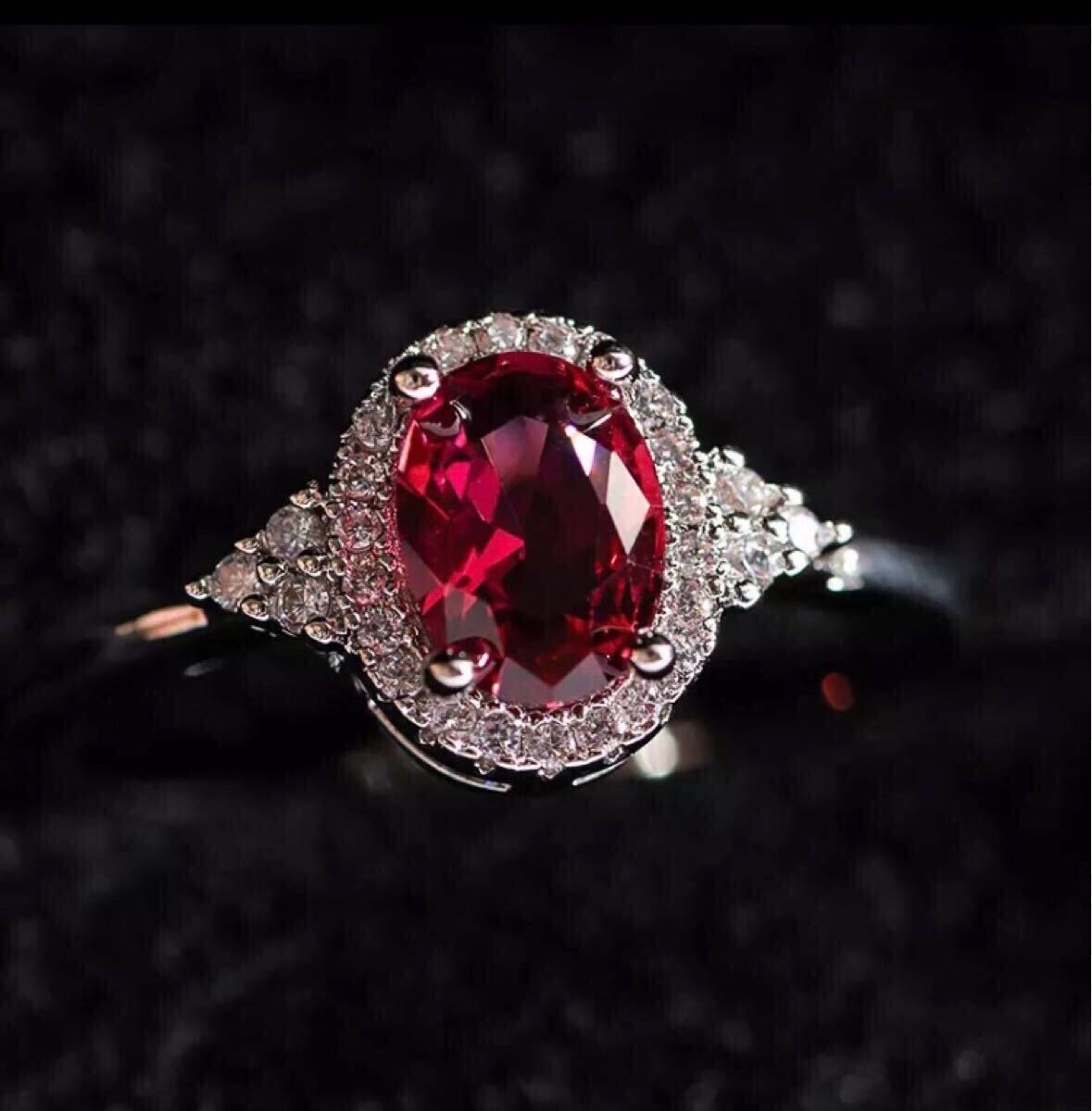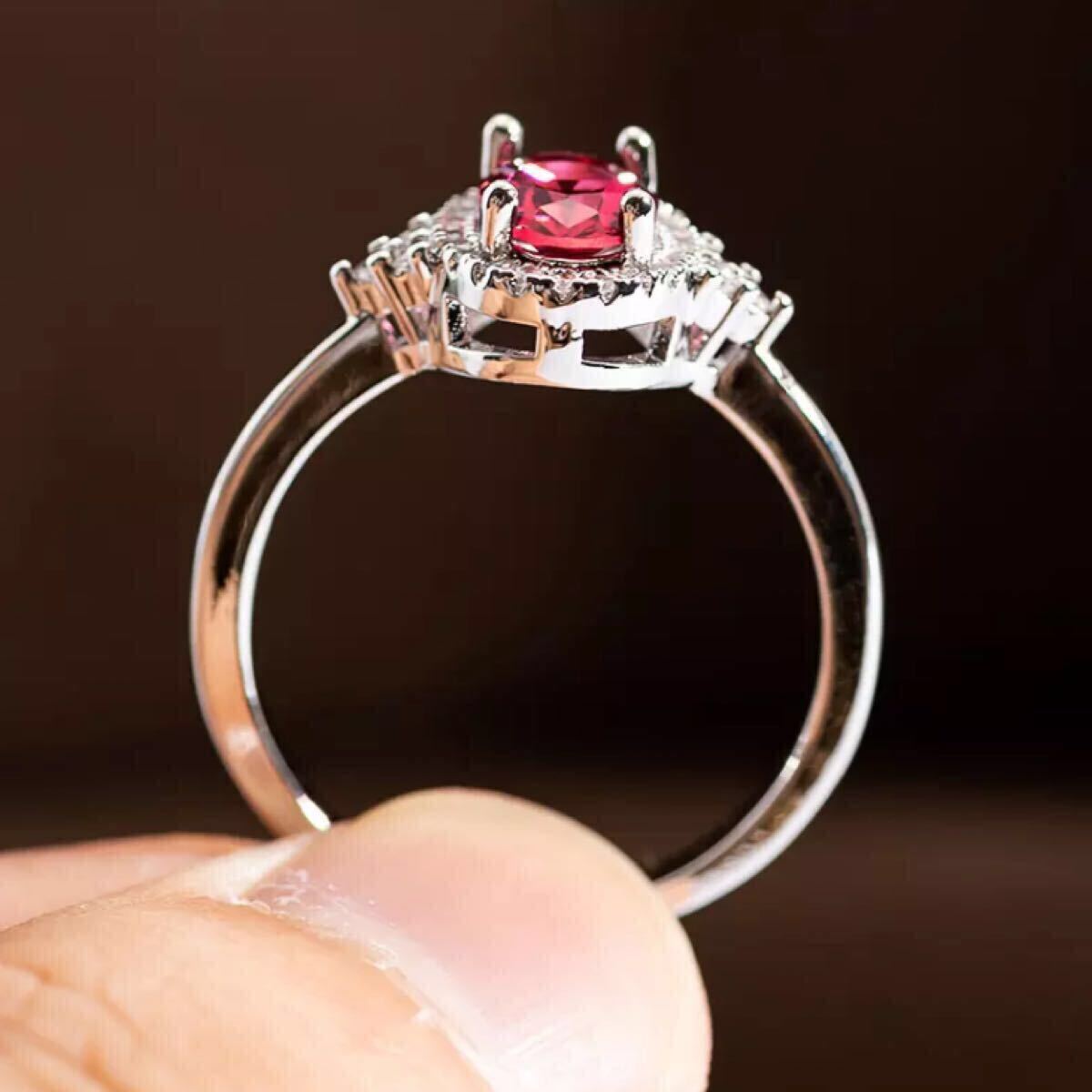 中央に輝くAAACZルビーと周りを彩るCZダイアモンドが視線を集めるリングです。上品な華やかさがあるお品です。カジュアルからフォーマルまで、幅広いファッションに合わせてお楽しみいただけます。