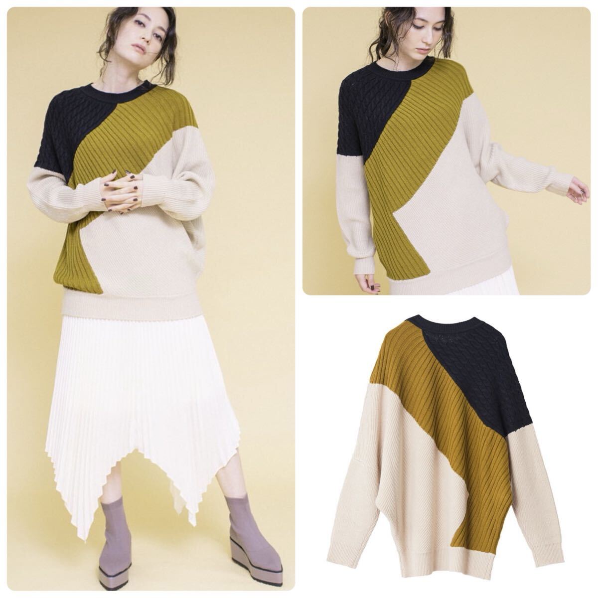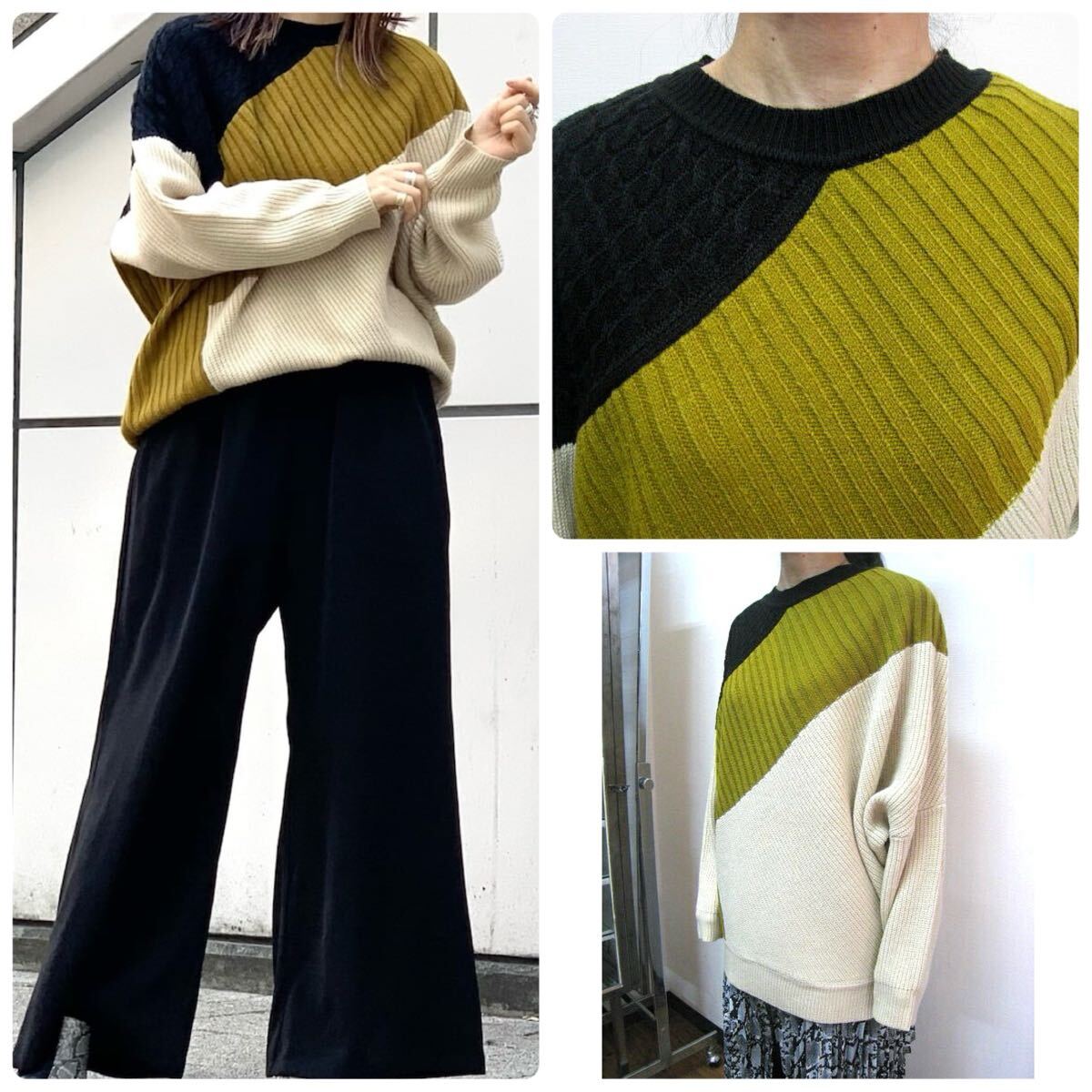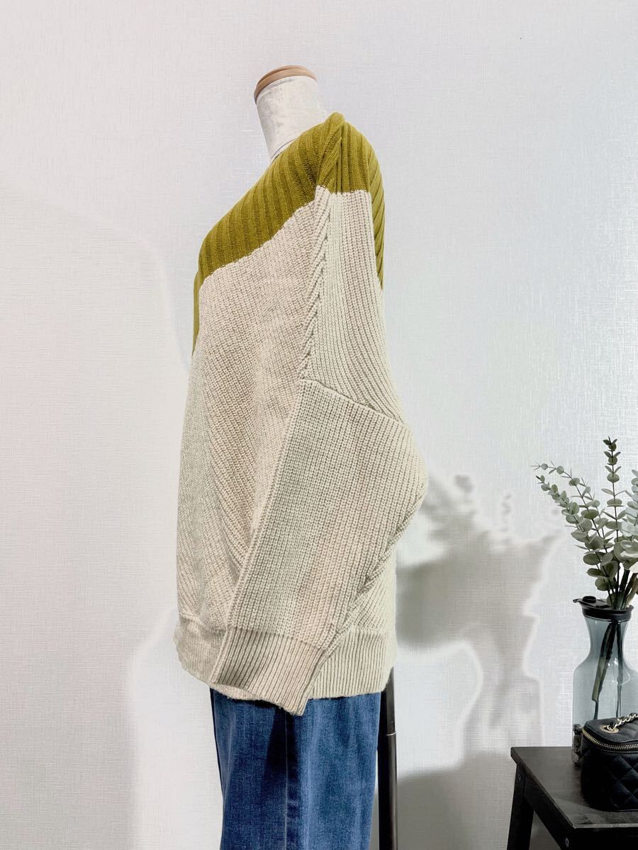 OSMOSIS/アシンメトリーブロッキングニットプルオーバー