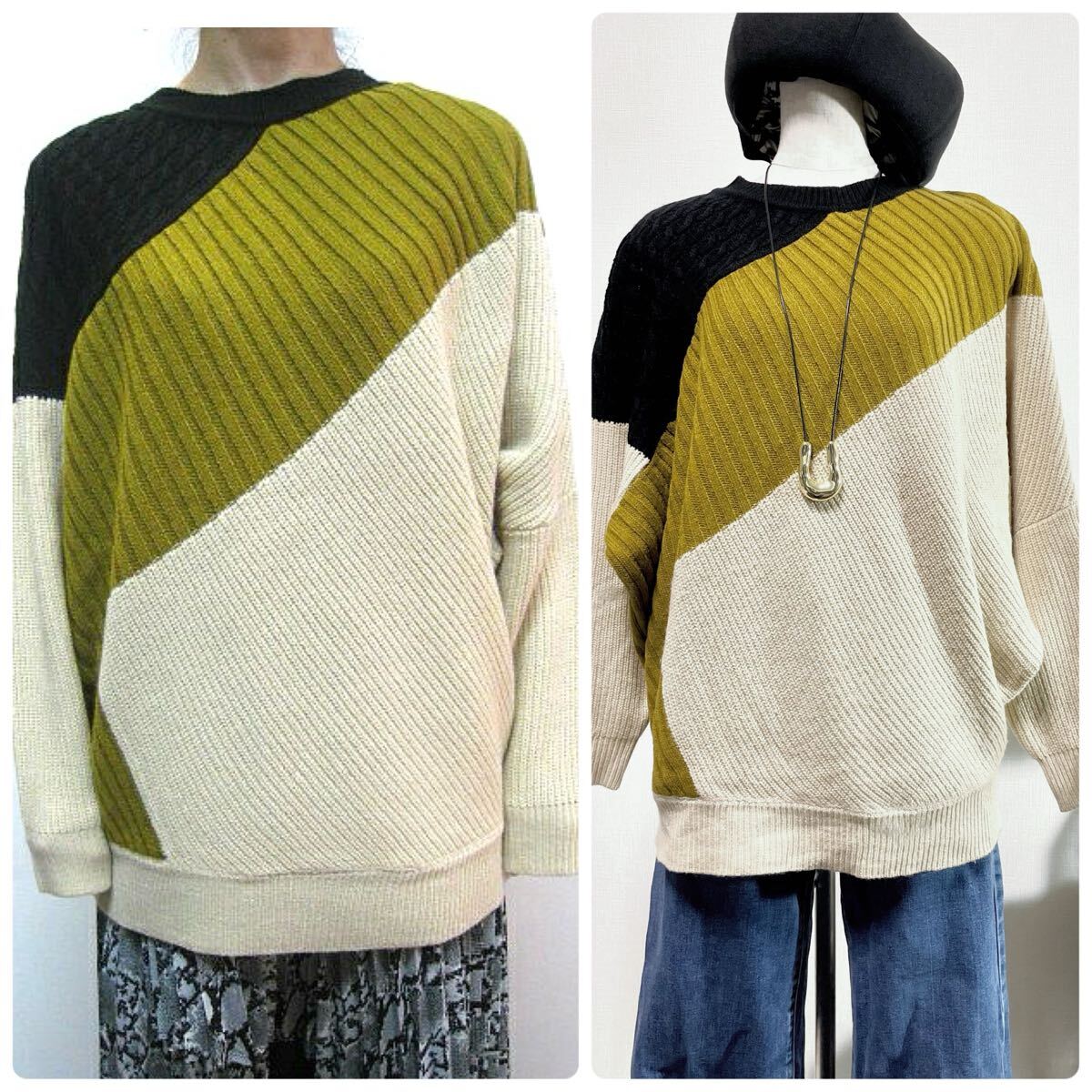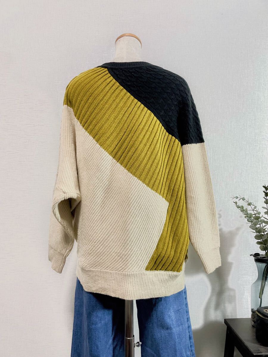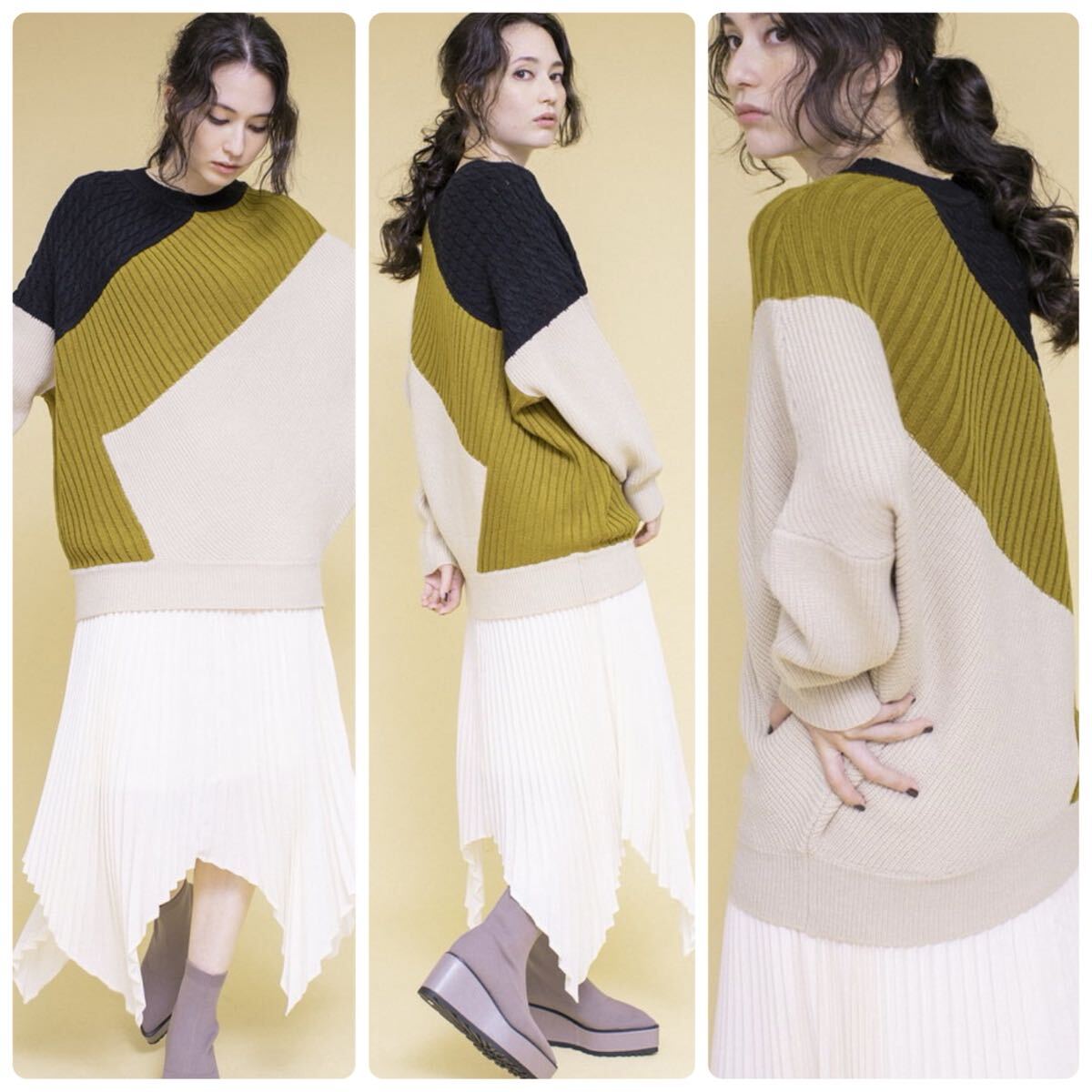 OSMOSIS/アシンメトリーブロッキングニットプルオーバー