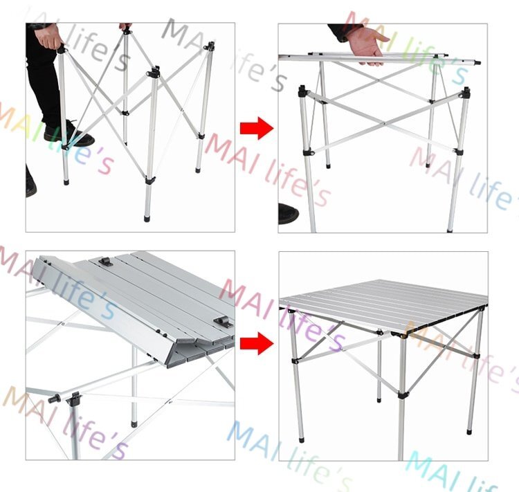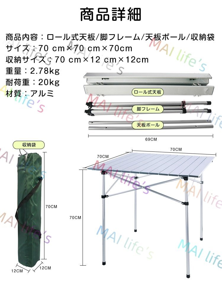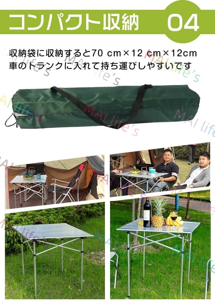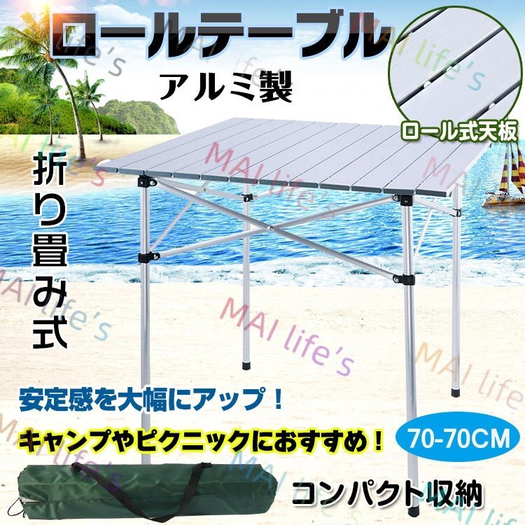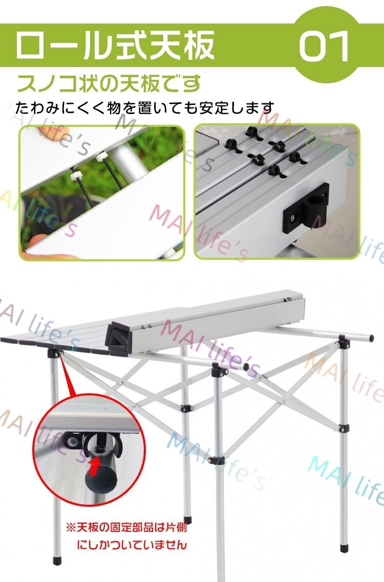 ロールテーブル キャンプテーブル アウトドアテーブル 折り畳み式 軽量 収納袋付き アルミ製 アウトドア ピクニック ハイキング バーベキュー BBQ