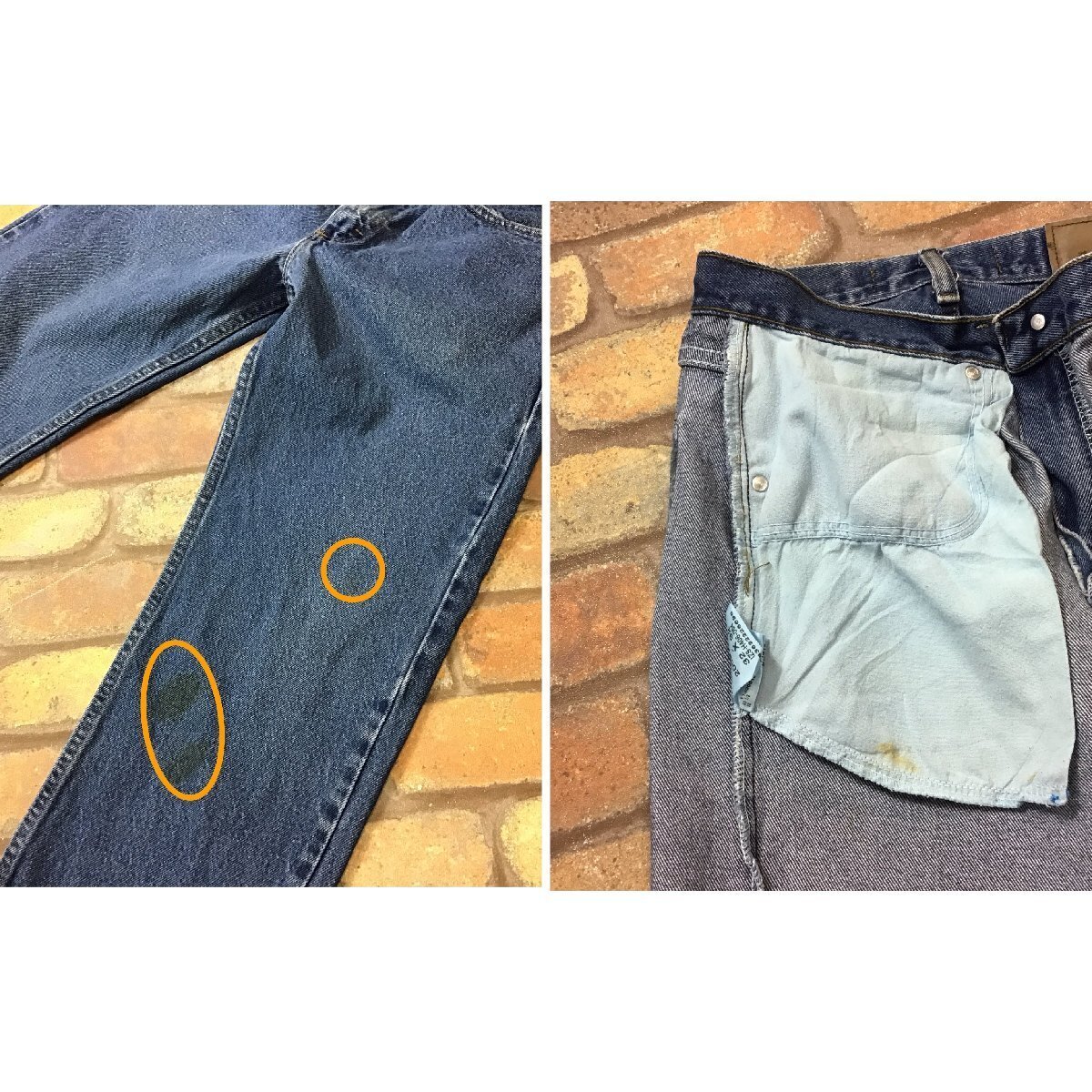 合計落札金額¥8,000円以上で、、、 送料無料!! ※こちらからの[合計支払い金額通知]をご確認の上、お支払い下さい♪ -------------------------------- 【Lee リー】 メキシコ製★USA古着 REGULAR FIT ストレート デニムパンツ ジーンズ モデル:175cm・普通体型 ● USA輸入・正規品 ● 海外サイズ規格 ● ポケット( 前左右:有・後左右:有) -------------------------------- ◆ 商品説明 ◆ 右膝付近とポケット内布にヨゴレがあります。 ※USEDジーンズ・パンツ特有の... ・ポケット入り口の僅かなスレ ・レザーベルト使用による色移り は“重度な状態”以外は記載を省かせていただきますので、 全体写真を拡大の上、ご確認下さい。 --------------------------- ◆ サイズ表記 ◆ W32×L32 ※実寸をご確認の上、ご検討をお願いいたします。 ウエスト:39cm 股上:27cm 股下:78cm ワタリ幅:29cm 裾幅:19cm ※全て平置き時のサイズです。 素人採寸の為、多少の誤差はご了承いただけますよう、お願いいたします。 ----------------------- ◆ 素材表記 ◆ コットン 100% ----------------- | |||||