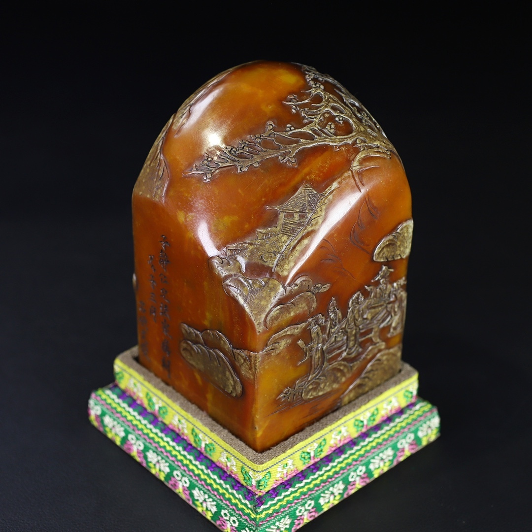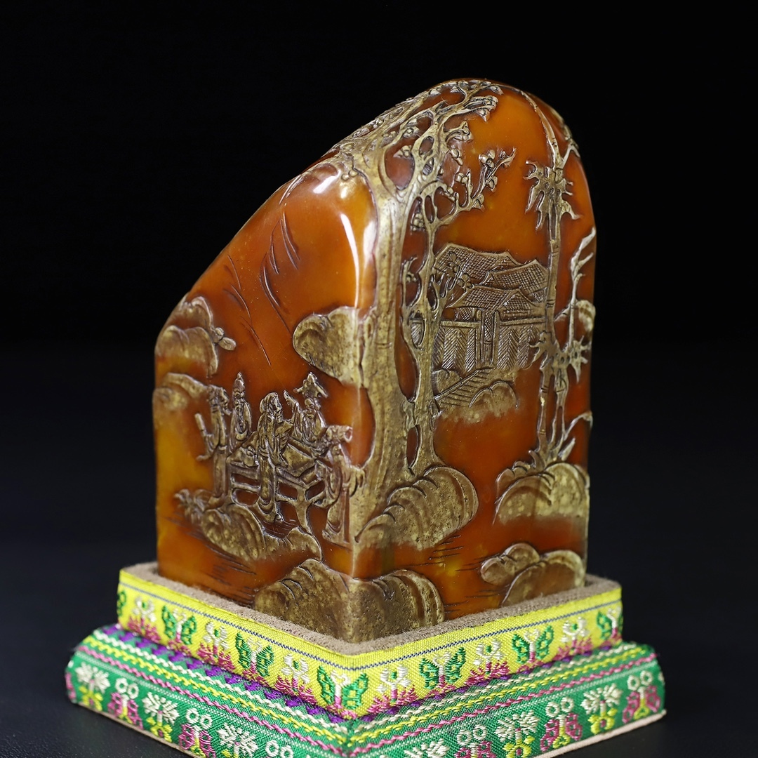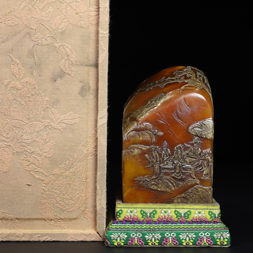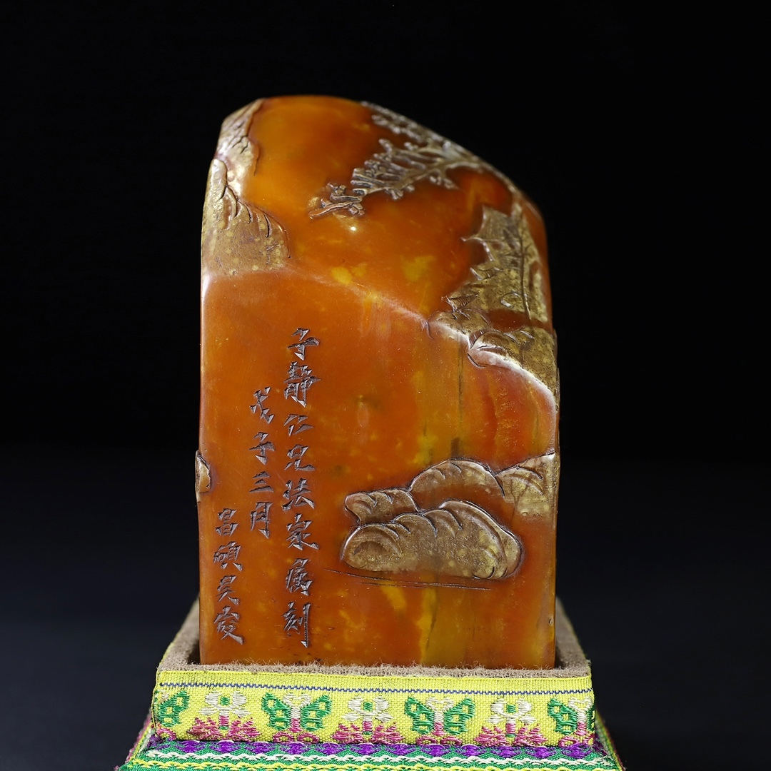 唐物 【清代篆刻家 呉昌碩 呉俊】寿山石 田黄微彫 山水人物 薄意印鑑 天然石 手彫 篆刻 古印材 極細工 中国古玩 骨董品 古美味 D610