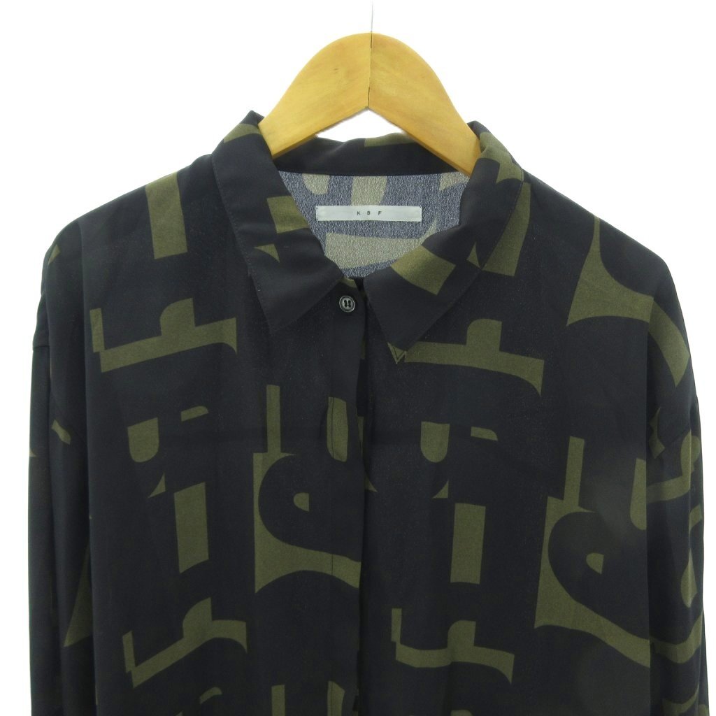 ケイビーエフ KBF アーバンリサーチ 美品 薄手 シャツ ブラウス 総柄 長袖 O 黒 ブラック カーキ 1006 ■YHS5 レディース