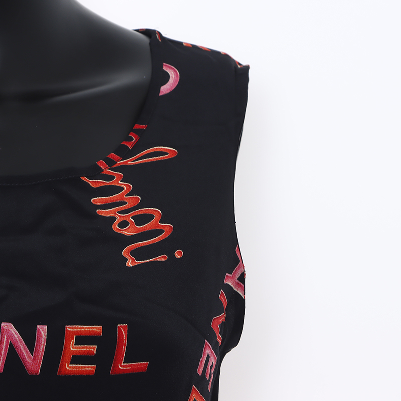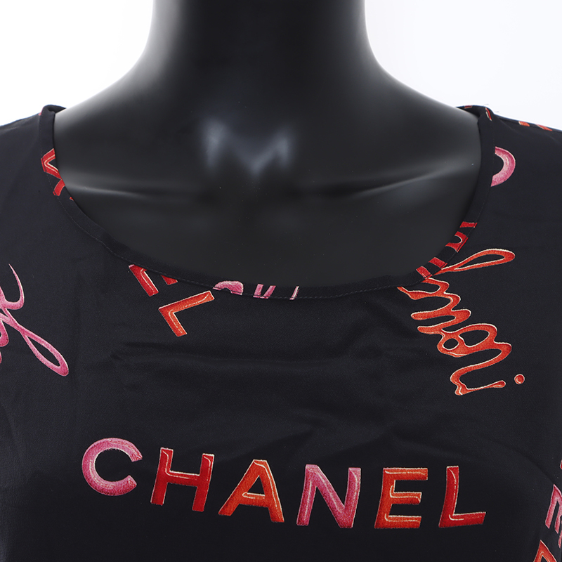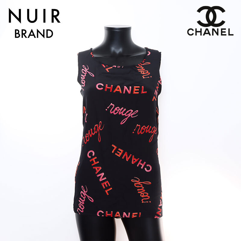 極美品 CHANEL 総柄 シルク ノースリーブ サイズ:36 半袖シャツ ブラック
