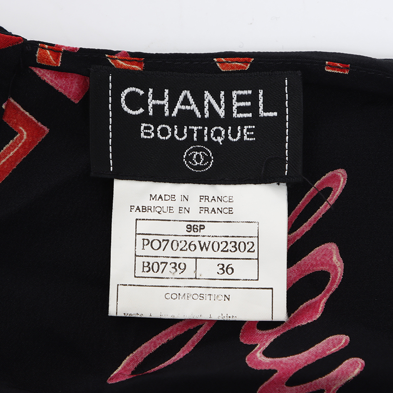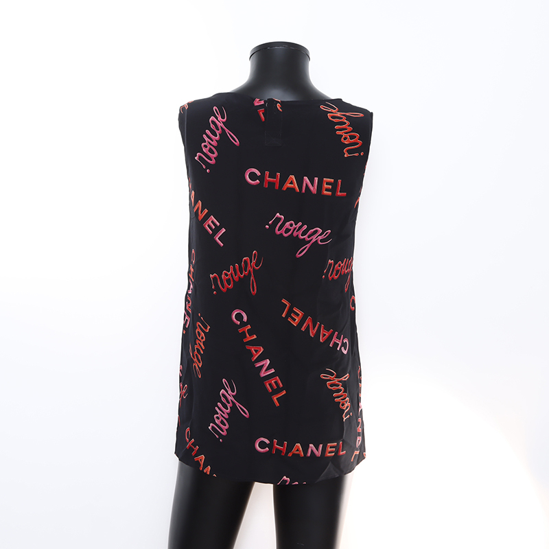 極美品 シャネル CHANEL 総柄 シルク ノースリーブ サイズ:36 半袖シャツ ブラック WS1644