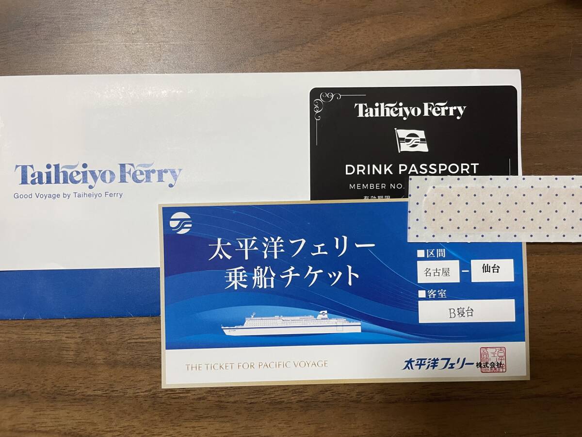 太平洋フェリーの乗船券とドリンクパスポートのセット。