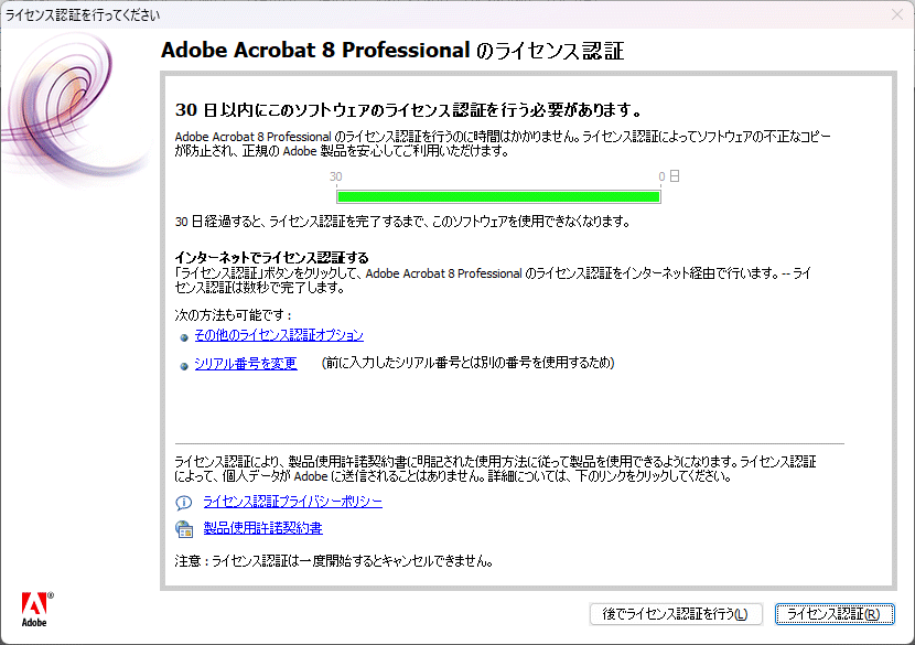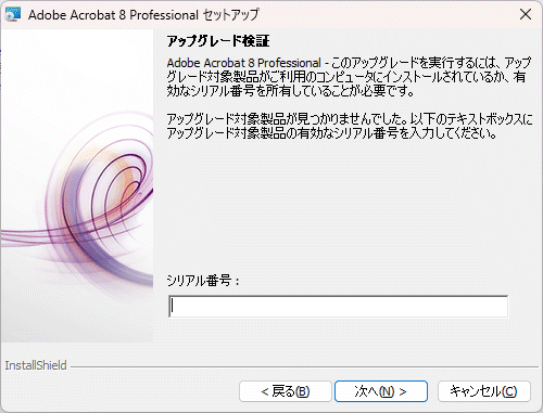 インストール時には旧バージョンのシリアル番号が必要となります。