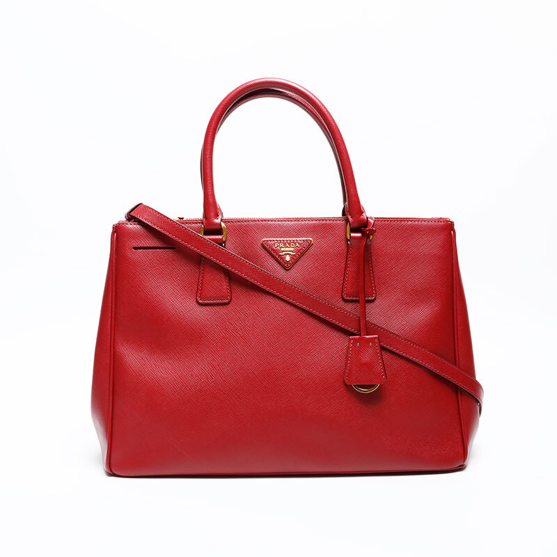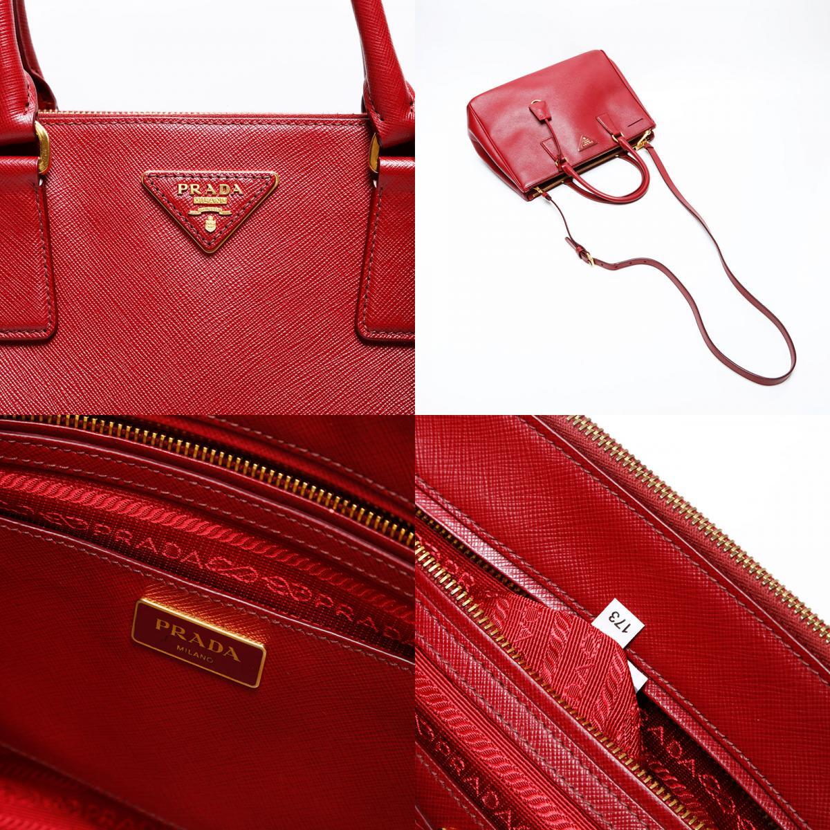 極美品 PRADA ガレリア サフィアーノ レザー ショルダーバッグ レッド
