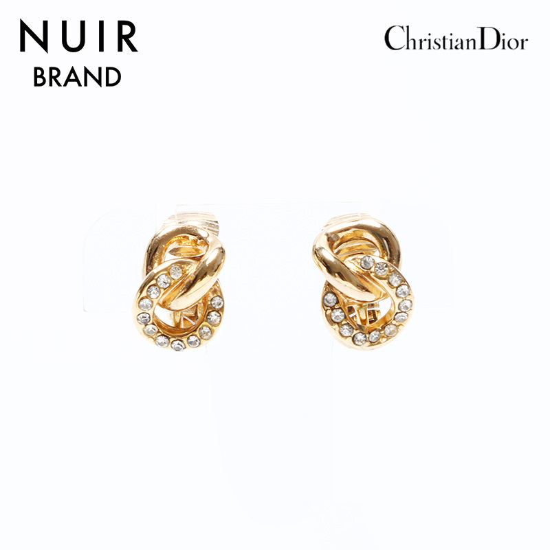極美品 Christian Dior ヴィンテージ ラインストーン イヤリング ゴールド