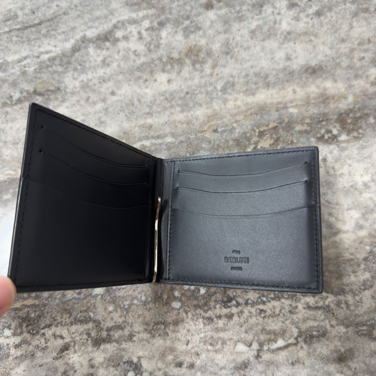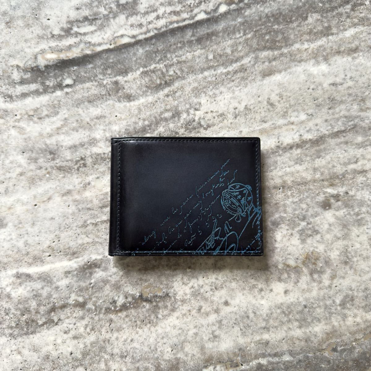 ベルルッティのフィギュア カリグラフィースクリットレザーマネークリップ付き二つ折り財布になります。