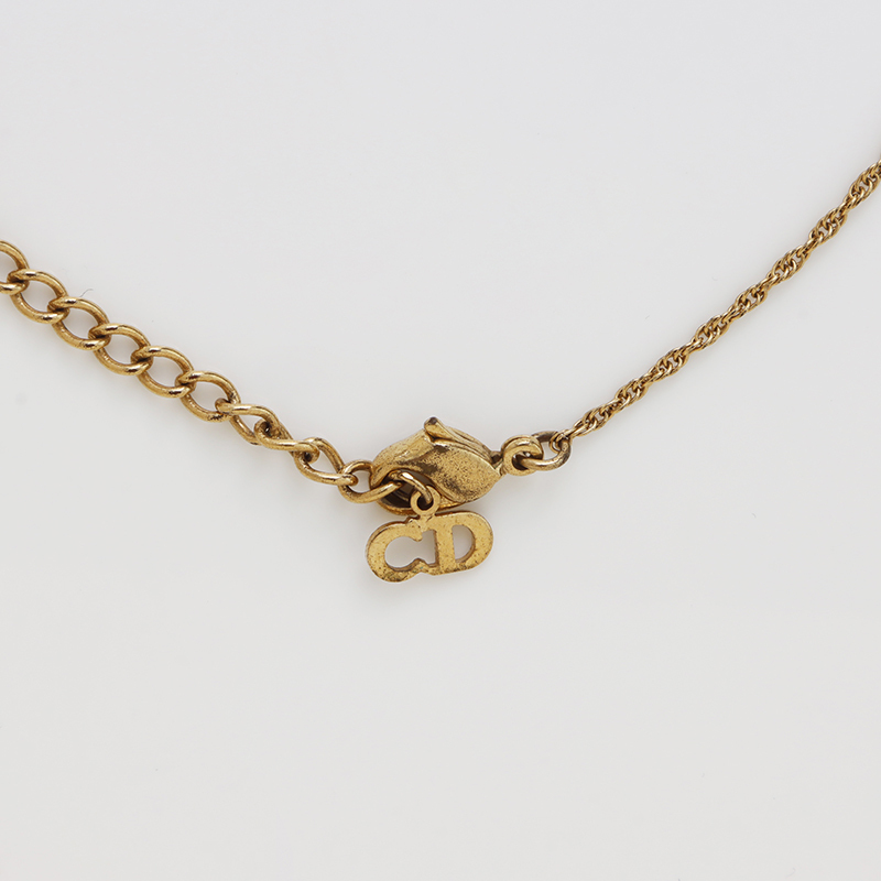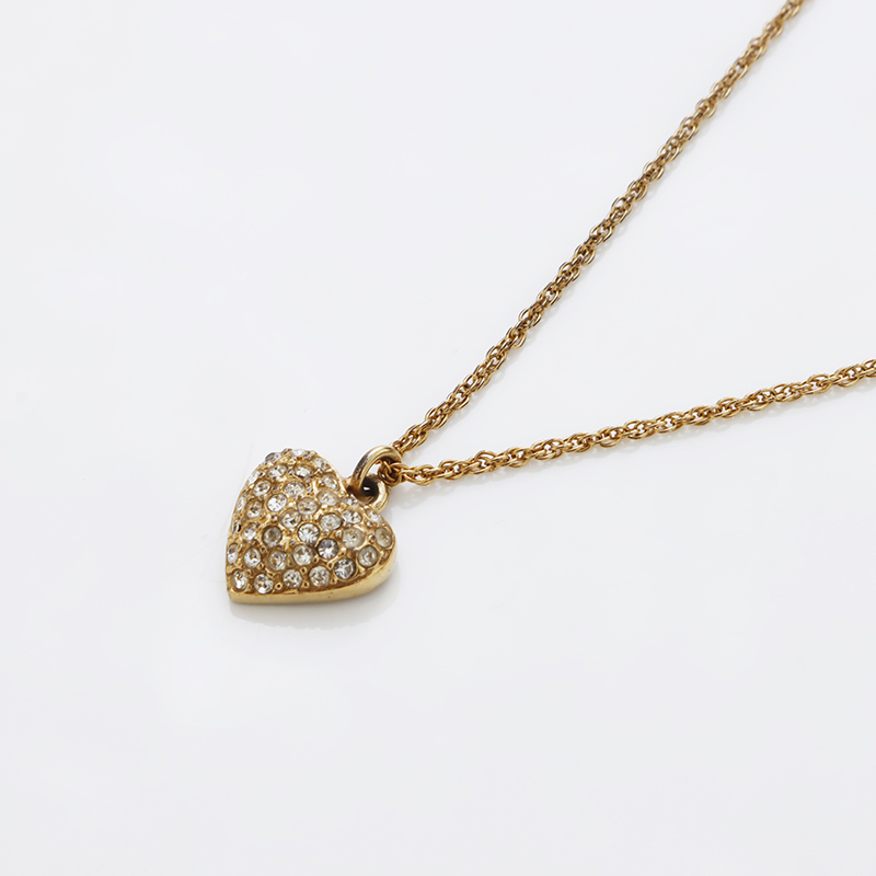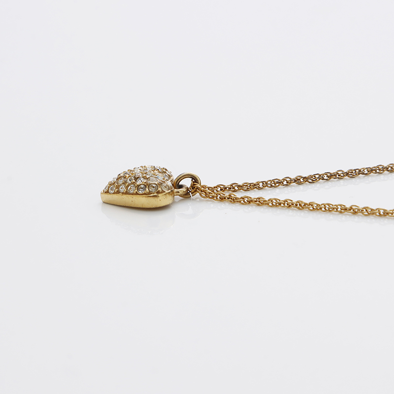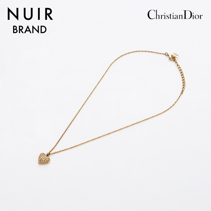 極美品 Christian Dior ラインストーン ハート ネックレス ゴールド