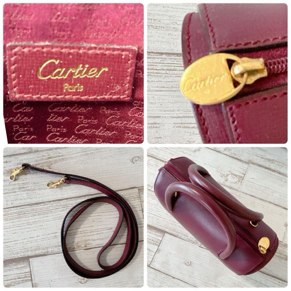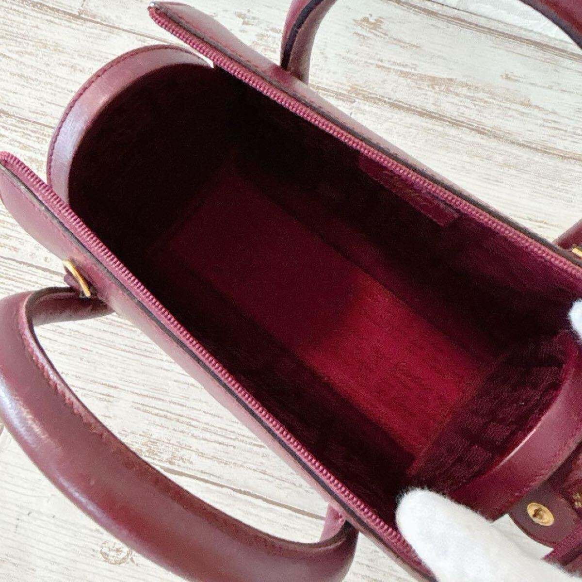 Cartier カルティエ ハンドバッグ ミニボストン ミニバッグ ショルダーバッグ 2way マストライン レザー 本革 ゴールド金具 希少 レア ボルドー ワインレッド ヴィンテージ
