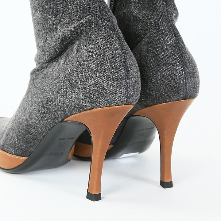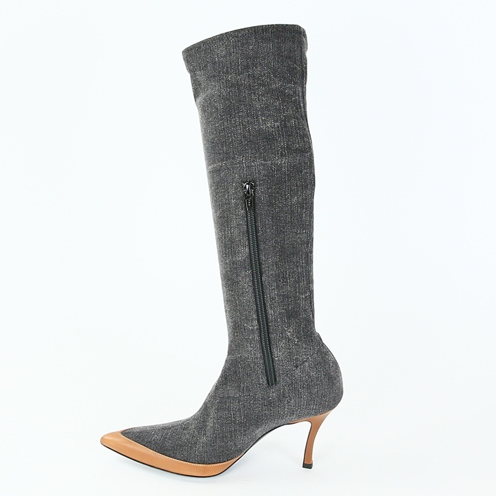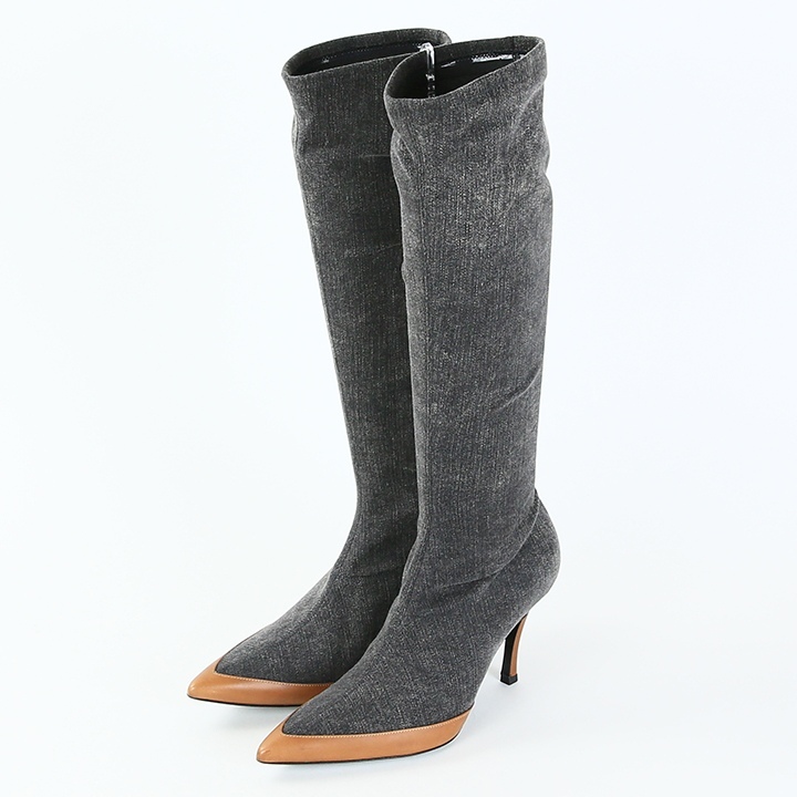 | 【平置き実寸サイズ】※単位cm 【EUR37 JP24.0cm】ヒール高8 全高44 筒周り29.5 【素材】 アッパー:コットン(綿)、ポリウレタン ライナー:レザー(本革) ソール:レザー(本革) 【生産国】CHINA | ![]() |