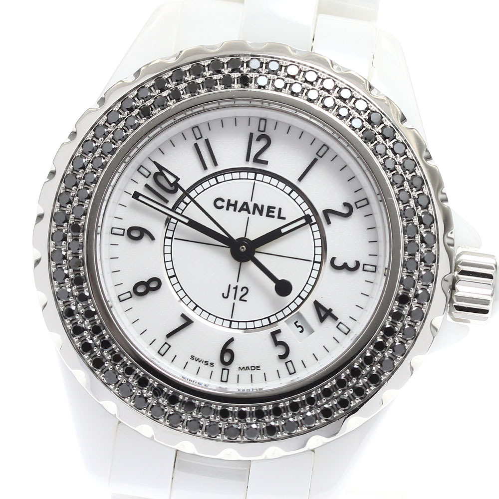 シャネル CHANEL H1630 J12 白セラミック ブラックダイヤベゼル クォーツ レディース _913995