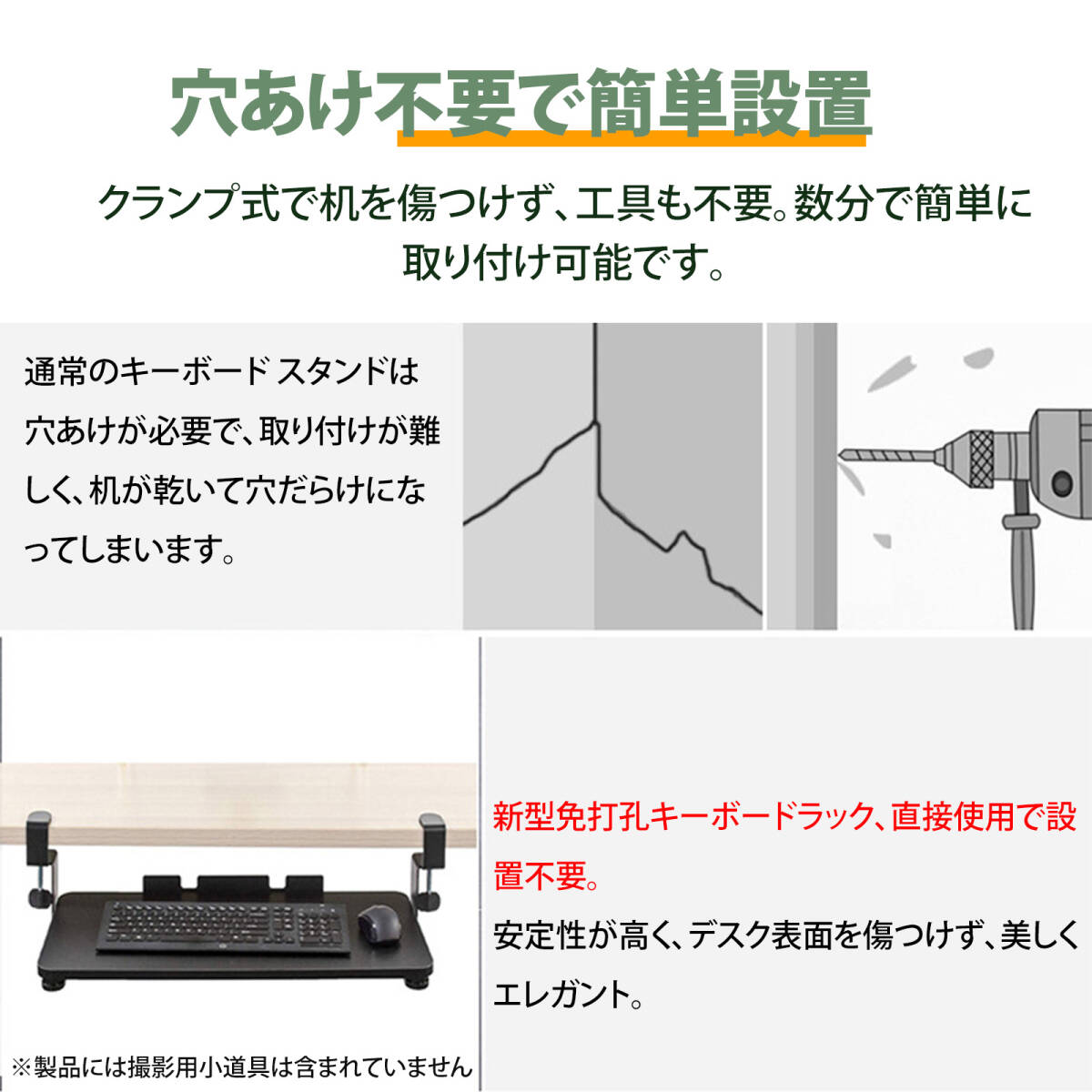 | 用途 | キーボードトレイ、マウストレイ、デスクトップ拡張など。 |